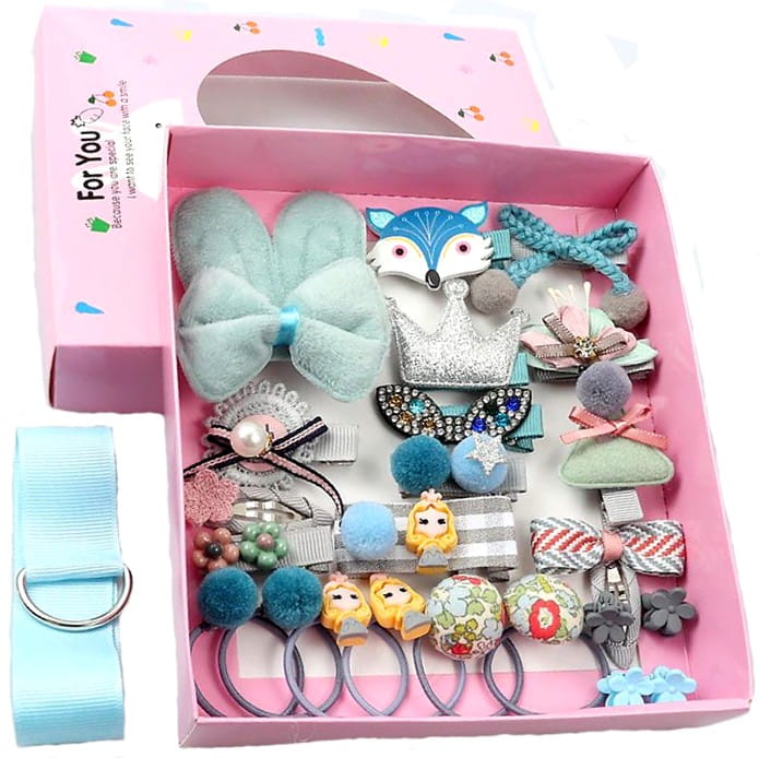 Šis 24 daļu bērnu matu sprādžu komplekts ir lieliska izvēle mazajiem. Komplektā ir dažādi izmēri un dizaini, kas ļauj veidot dažādas frizūras.