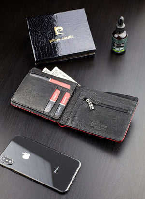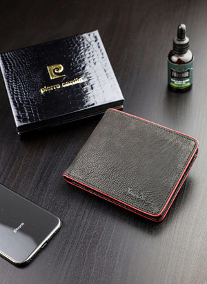 Vīriešu ādas maks Pierre Cardin Tumble 88061 melns + sarkans S430