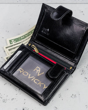 Šis elegantais vīriešu maks no Rovicky ir izgatavots no augstas kvalitātes īstas ādas, kas nodrošina izturību un stilīgu izskatu.