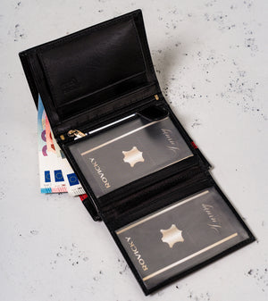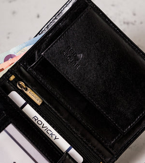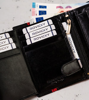 Šis elegantais vīriešu maks no Rovicky ir izgatavots no augstas kvalitātes īstas ādas, nodrošinot izturību un stilīgu izskatu.