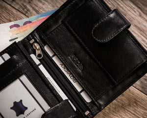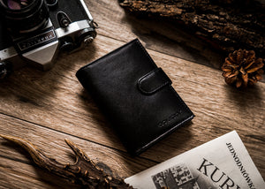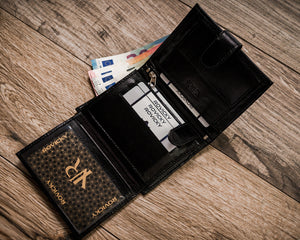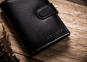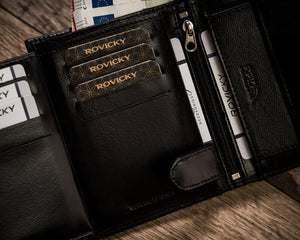Šis elegantais vīriešu maks no Rovicky ir izgatavots no augstas kvalitātes īstas ādas, kas nodrošina izturību un stilīgu izskatu. Melnā krāsa piešķir tam klasisku un daudzpusīgu izskatu, kas piemērots jebkuram gadījumam.