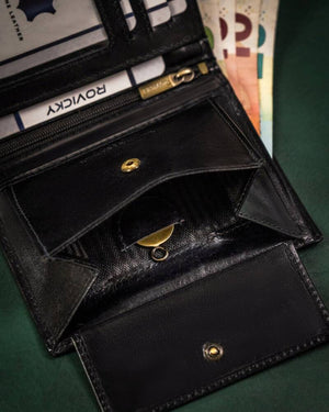 Šis elegantais vīriešu maks no Rovicky ir izgatavots no augstas kvalitātes īstas ādas, kas nodrošina izturību un stilīgu izskatu.