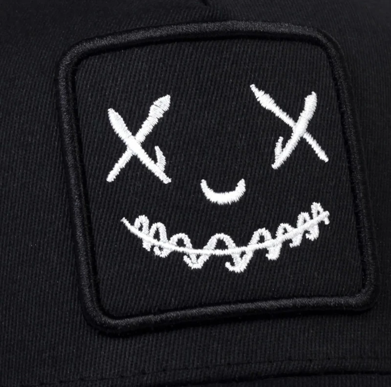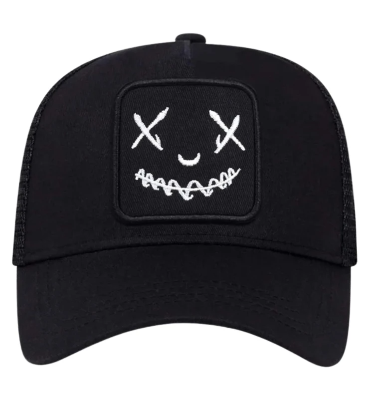 Klasiska melna cepure ar izšūtu smaidu