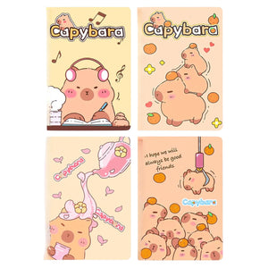 Piedāvājam jaunu 4 piezīmju grāmatiņu komplektu ar kapibarām, kas apbur ar savu jauko, multfilmas stila dizainu un augsto kvalitāti. Katras piezīmju grāmatiņas izmērs komplektā ir 14 x 21 cm, un tai ir 60 līnijotas lapas, padarot to ideāli piemērotu ikdienas piezīmēm, plāniem, zīmējumiem vai dienasgrāmatas vešanai.