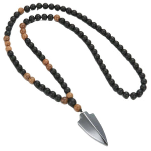 Šī stilīgā un izteiksmīgā kaklarota ir lielisks aksesuārs gan ikdienas valkāšanai, gan īpašiem gadījumiem. Izgatavota no melna obsidiāna, koka pērlītēm un hematīta, šī kaklarota apvieno dabisko skaistumu un eleganci.