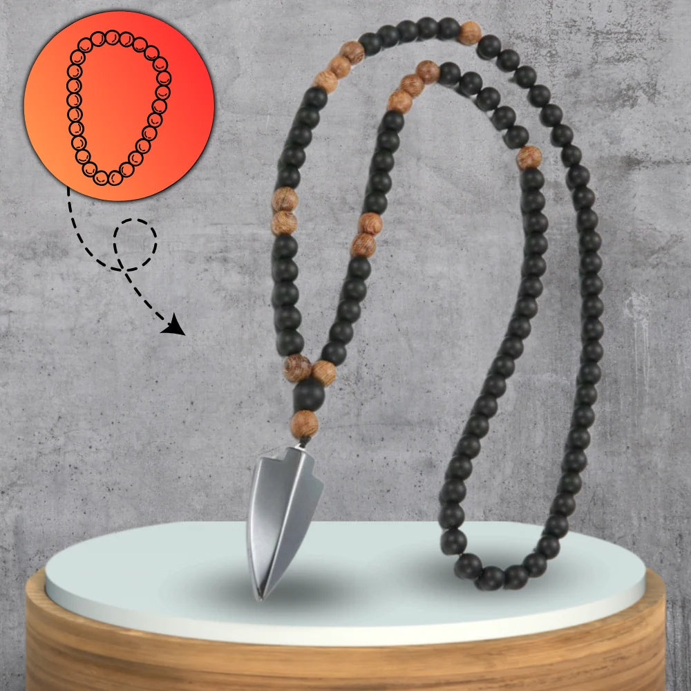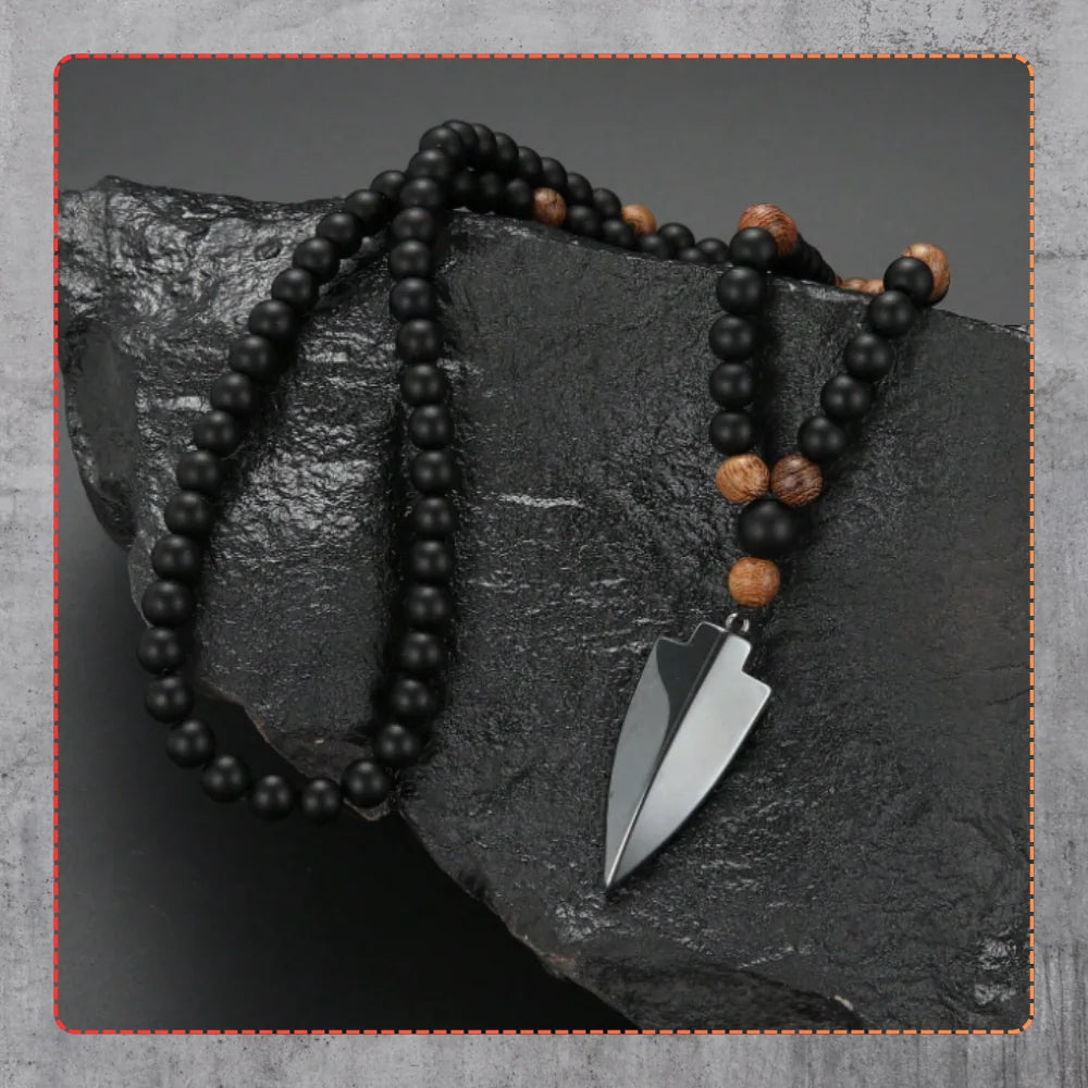 Kaklarota ar melnu obsidiāna kulonu un hematītu