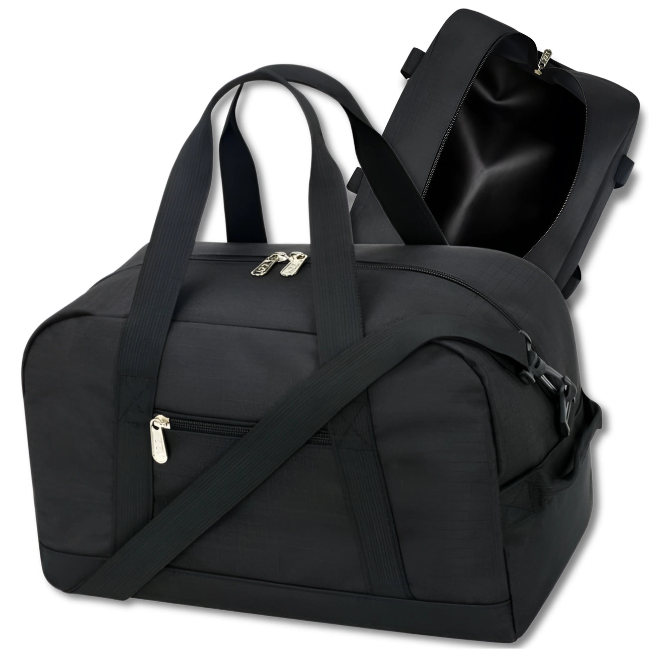 BAD&BAGS – melna ceļojumu soma ir moderna dizaina, praktisku risinājumu un augstas kvalitātes. Ideāla soma tiem, kas novērtē funkcionalitāti, izturību un mūžīgu stilu – gan ikdienā, gan ceļojumos. Pateicoties izmēriem 35 x 20 x 20 cm, soma atbilst vairuma aviokompāniju rokas bagāžas standartiem.