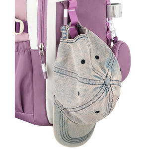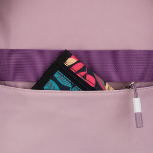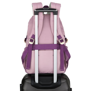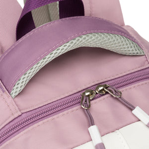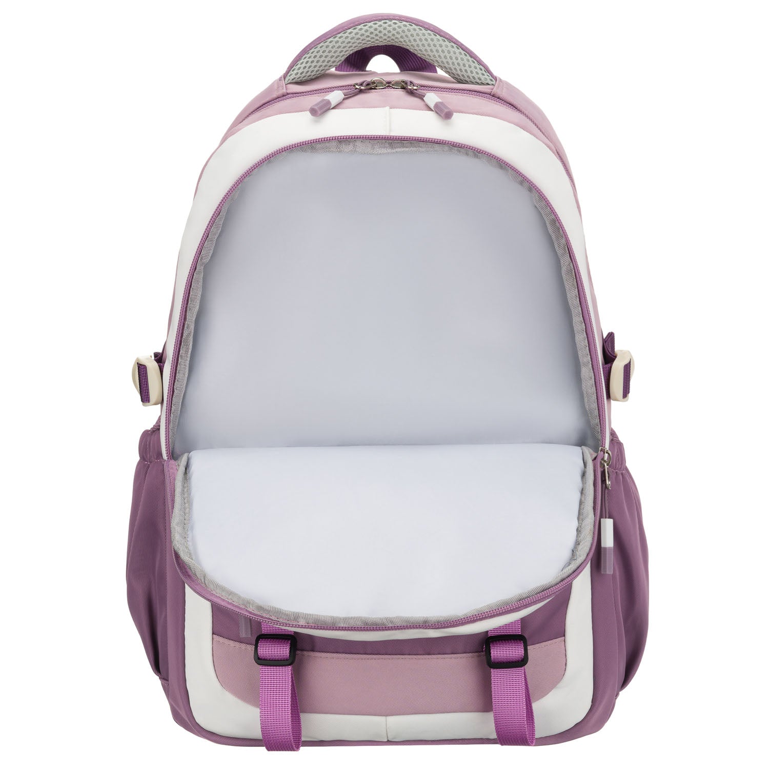 Peterson liela balti violeta poliestera mugursoma ar diviem nodalījumiem, ideāli piemērota ikdienas lietošanai.