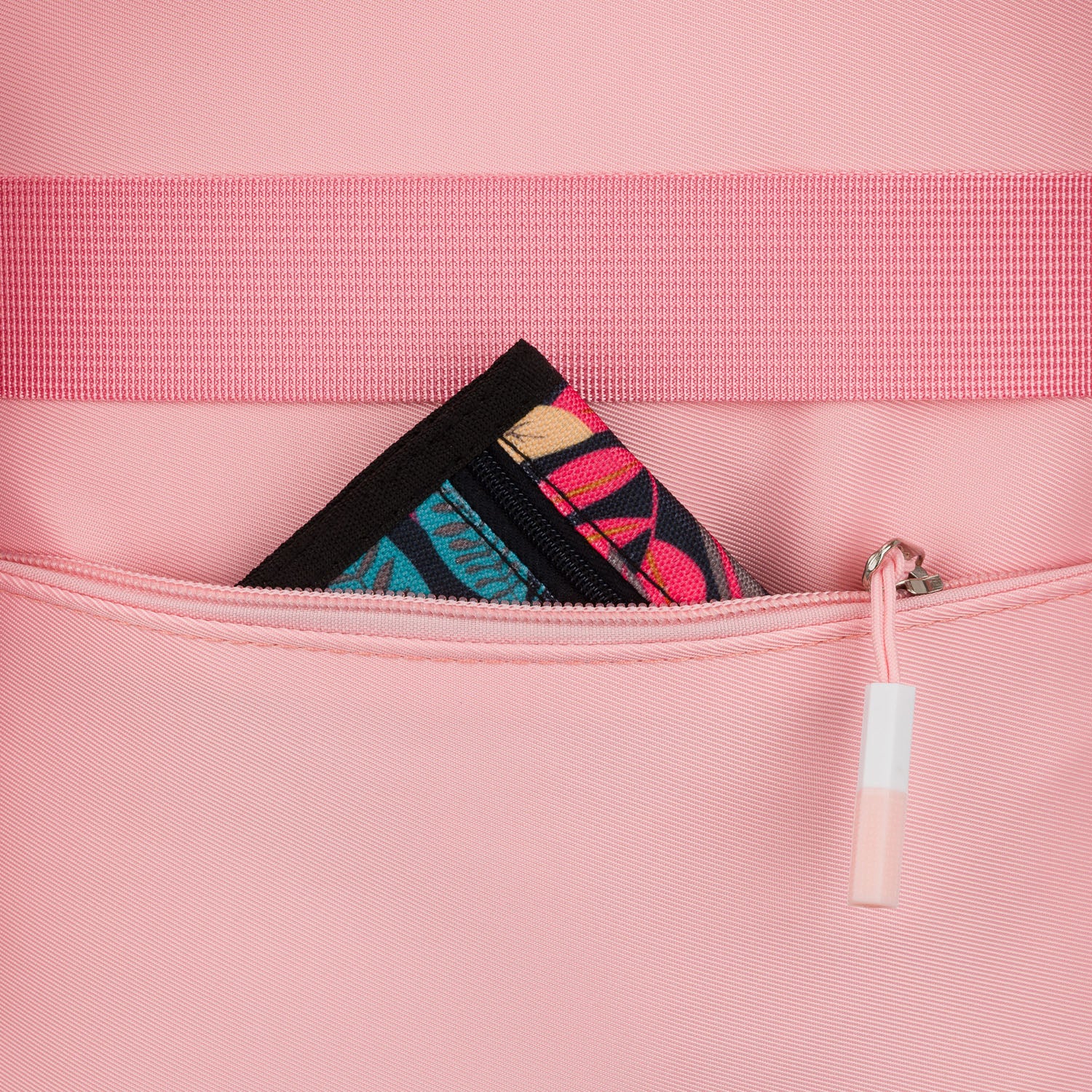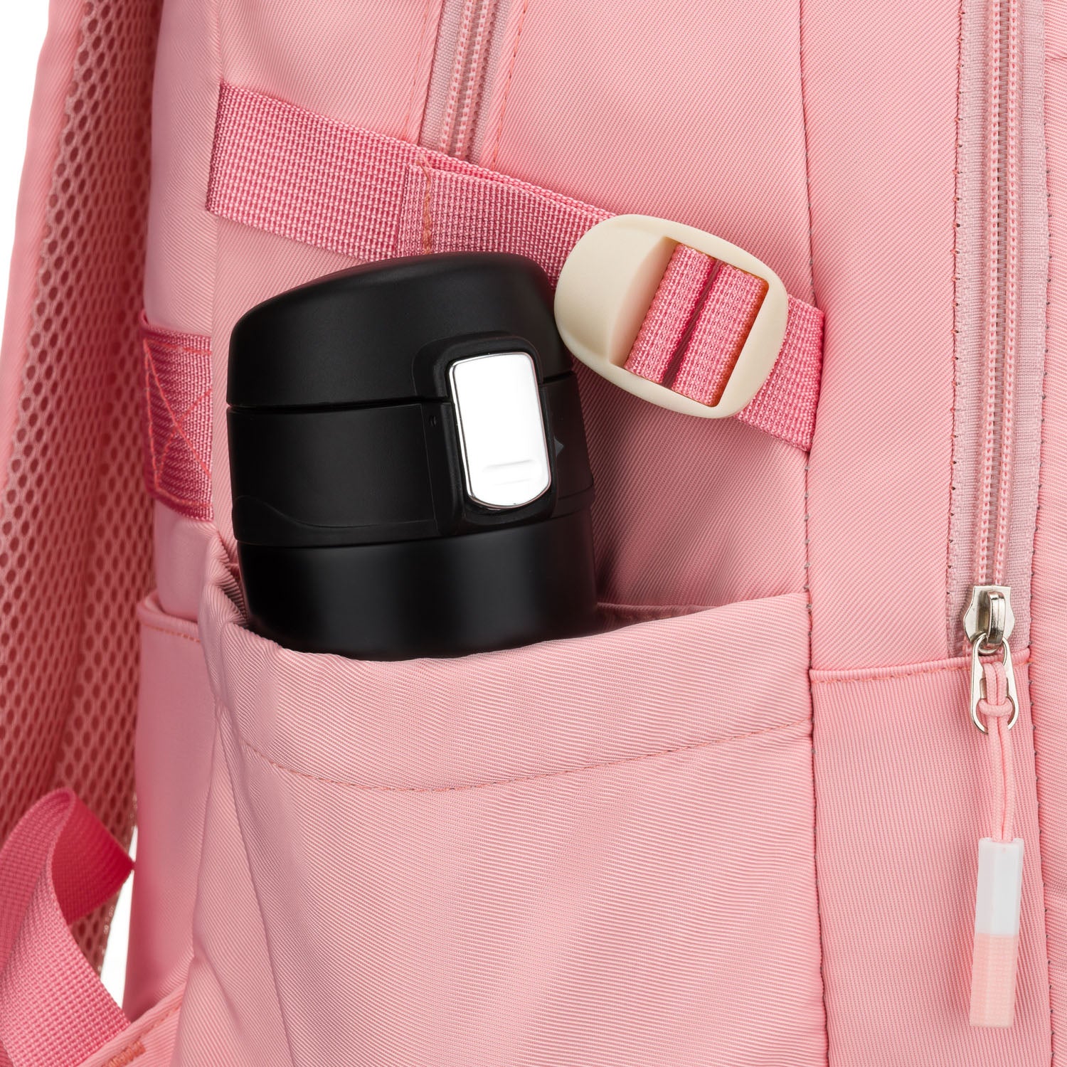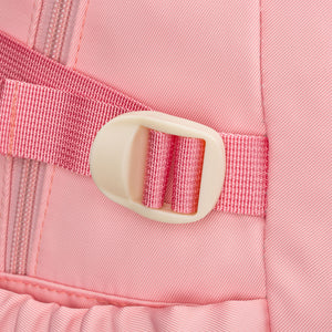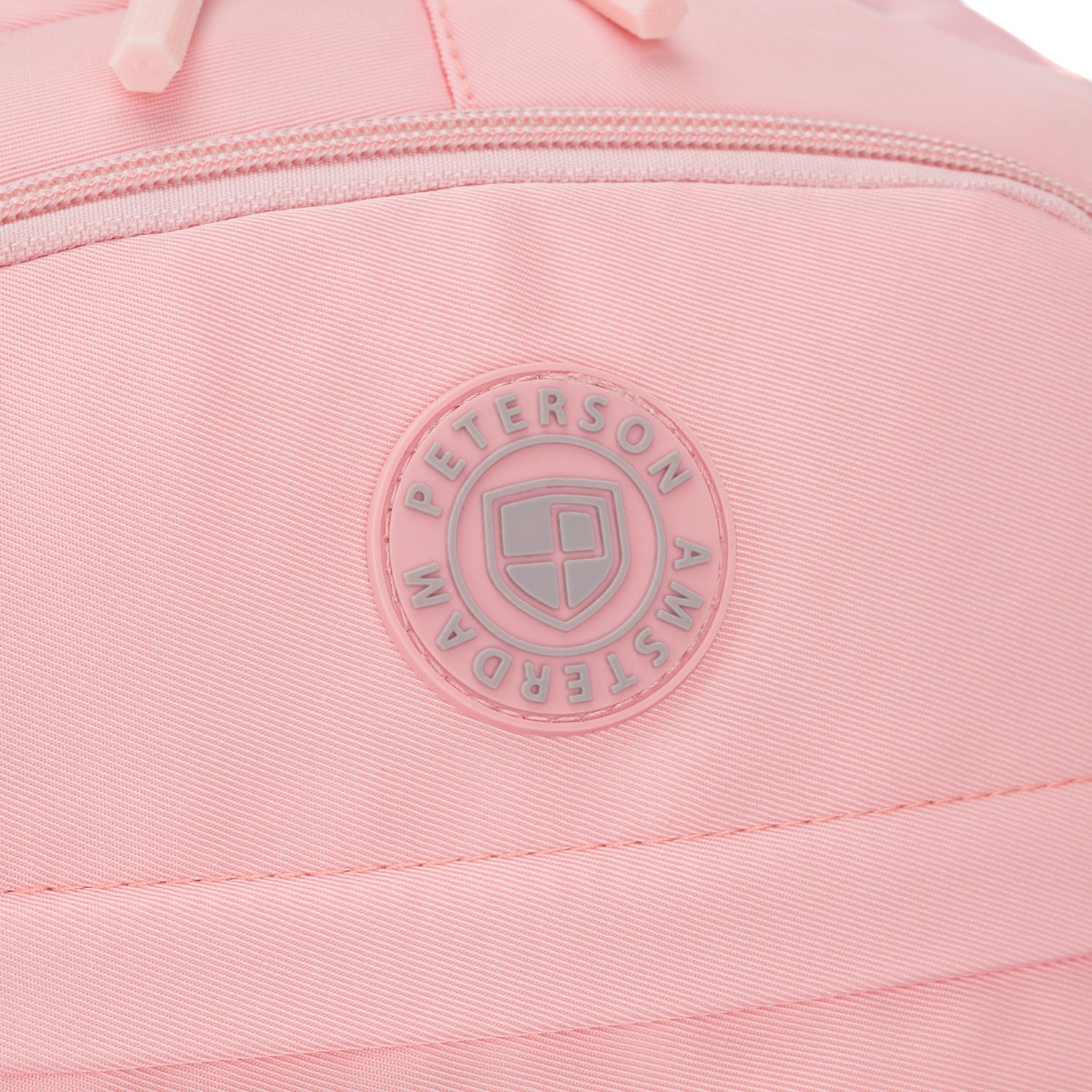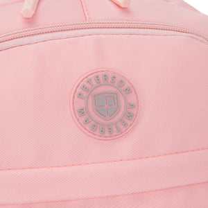 Peterson rozā liela mugursoma ar diviem nodalījumiem un sešām kabatām, izgatavota no poliestera.