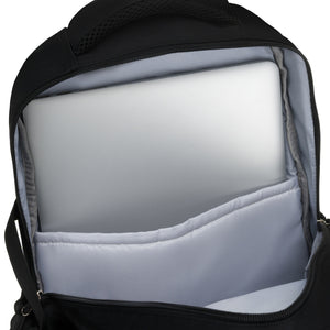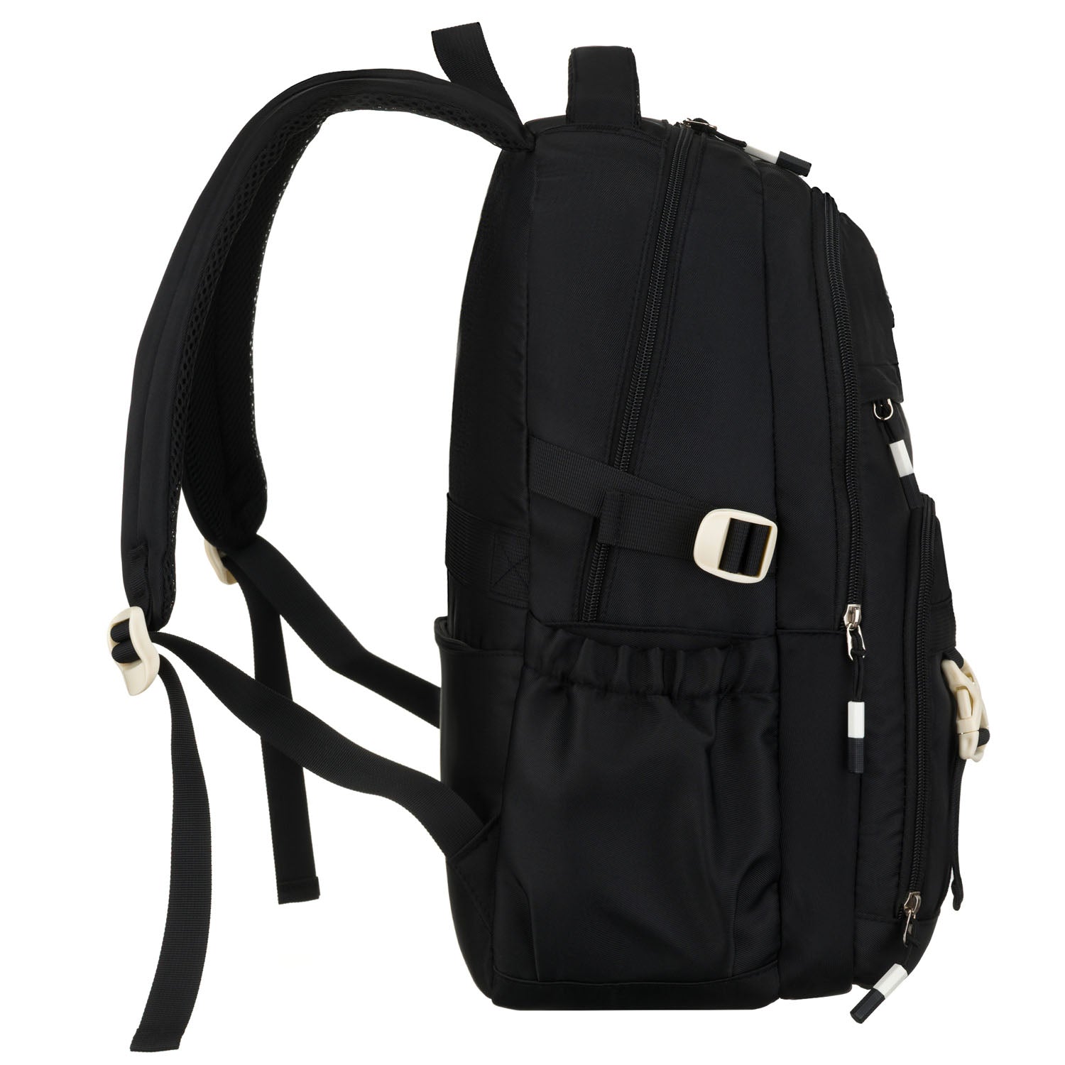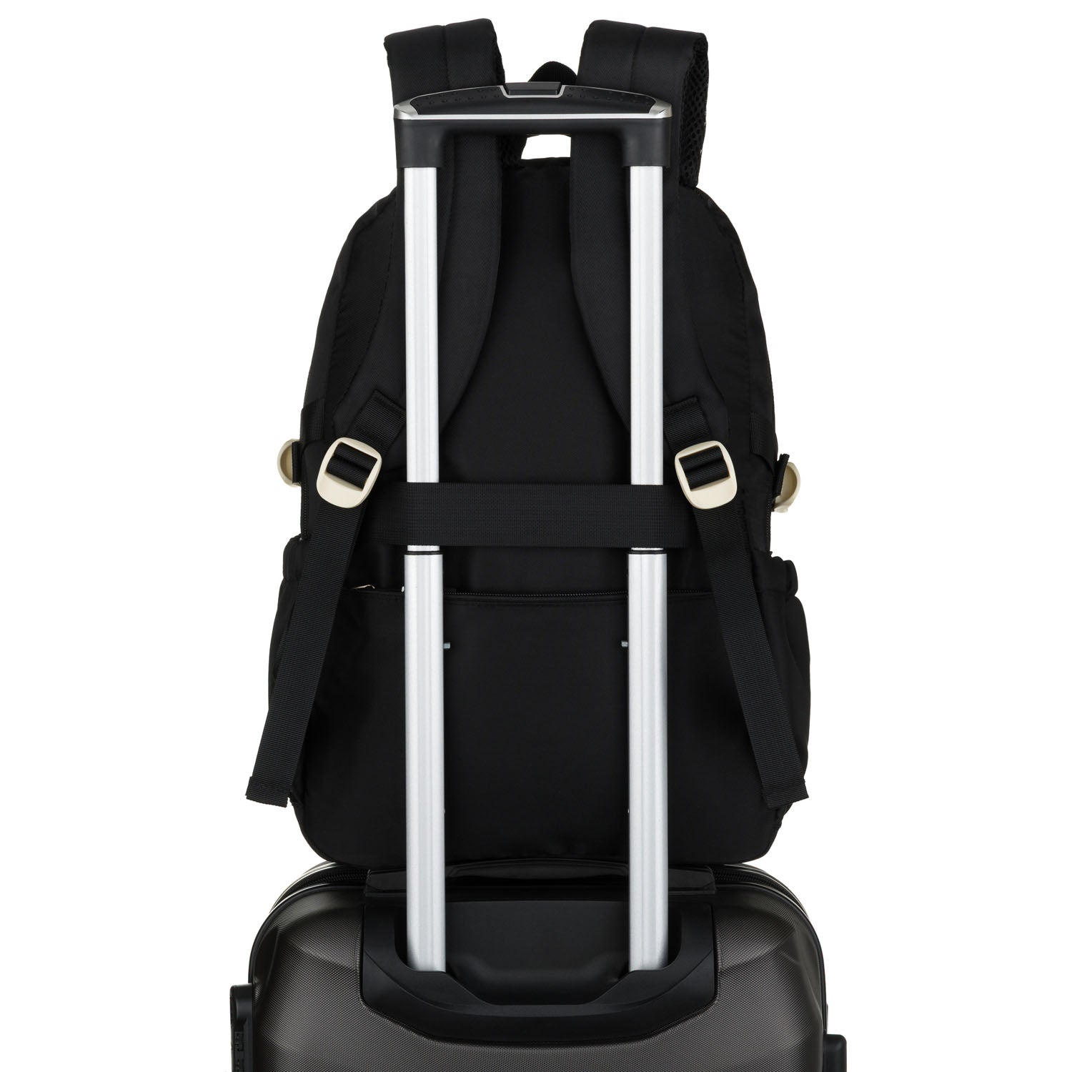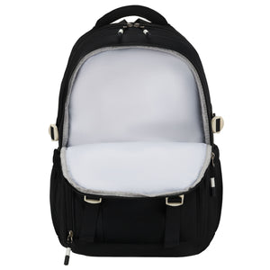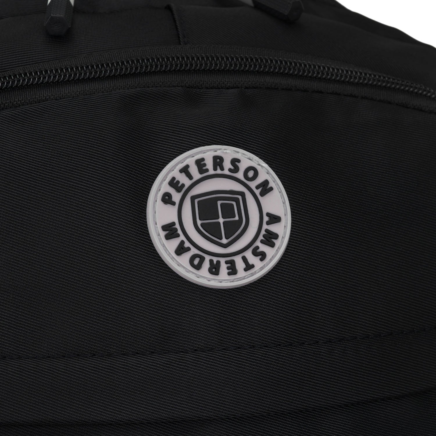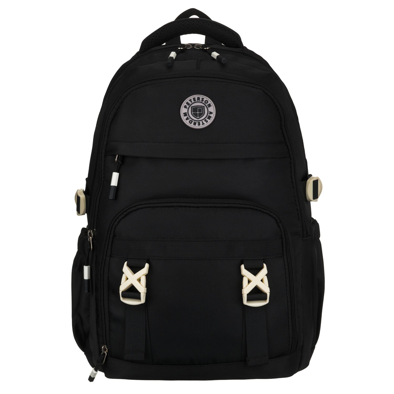 Peterson melna liela mugursoma ar diviem nodalījumiem un sešām kabatām, izgatavota no poliestera.