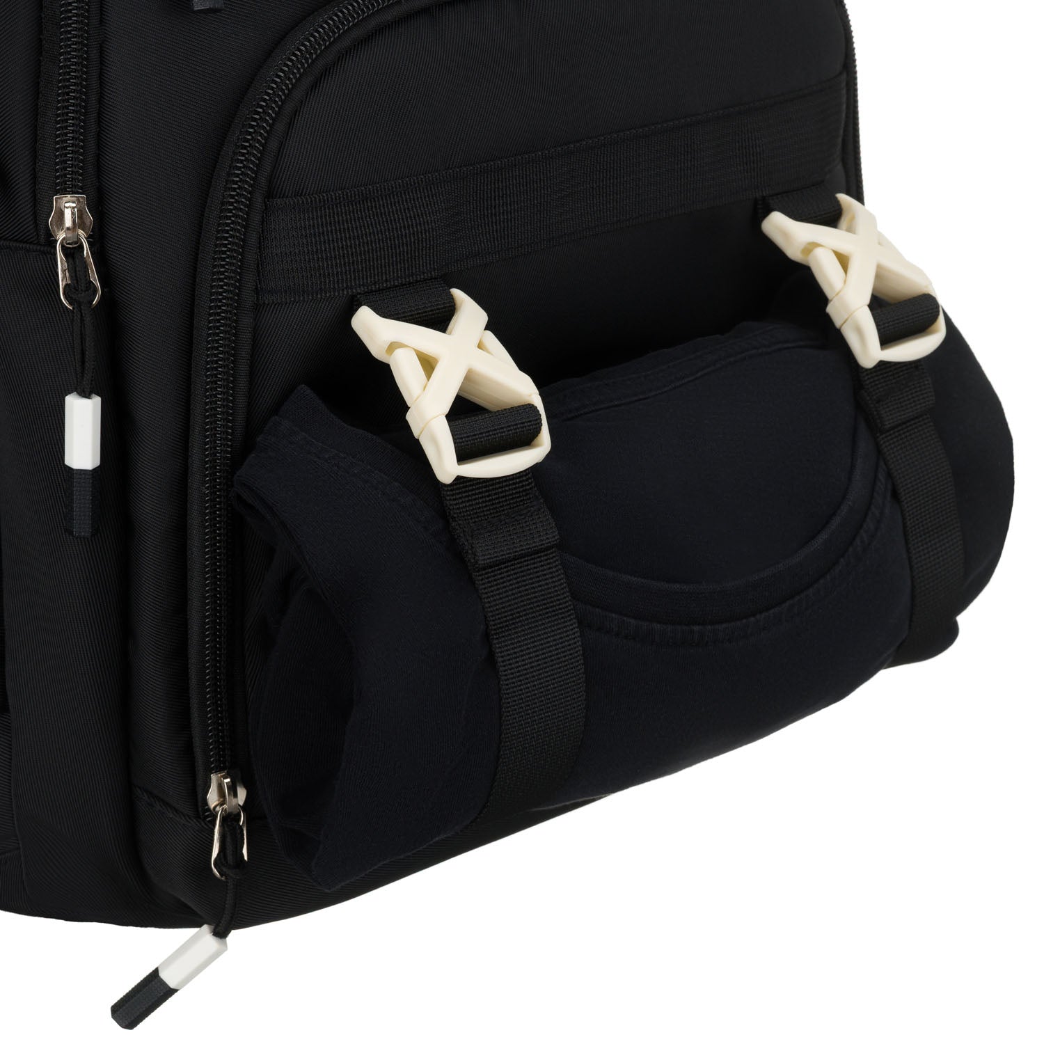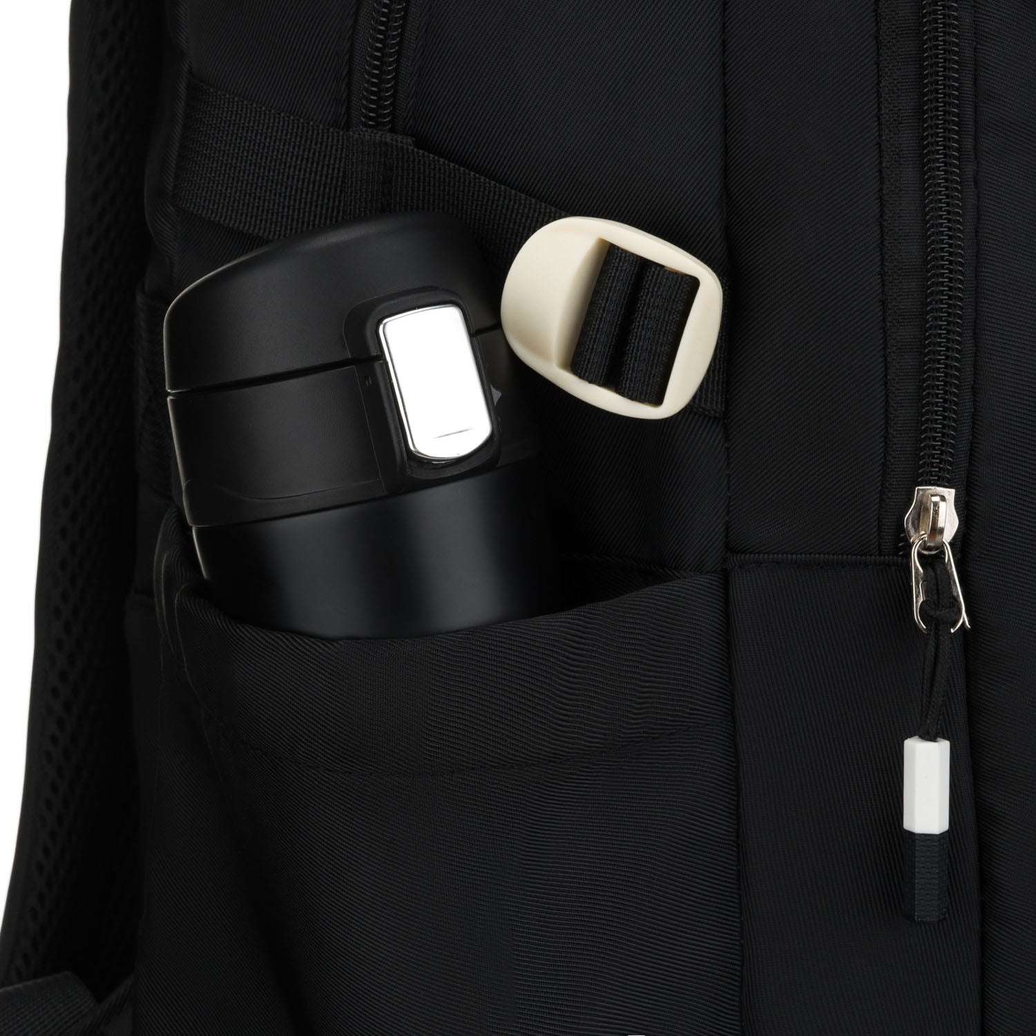 - Divi galvenie nodalījumi un sešas kabatas, ieskaitot kabatu klēpjdatoram.