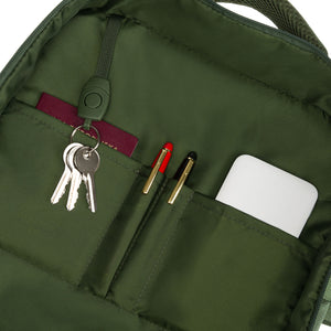 Peterson tumši zaļa liela mugursoma ar nodalījumiem, kas lieliski piemērota ikdienas lietošanai.