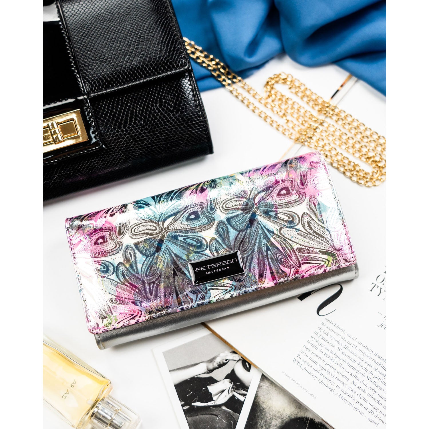 Vidēja izmēra sieviešu maks Peterson, daudzkrāsains PT18