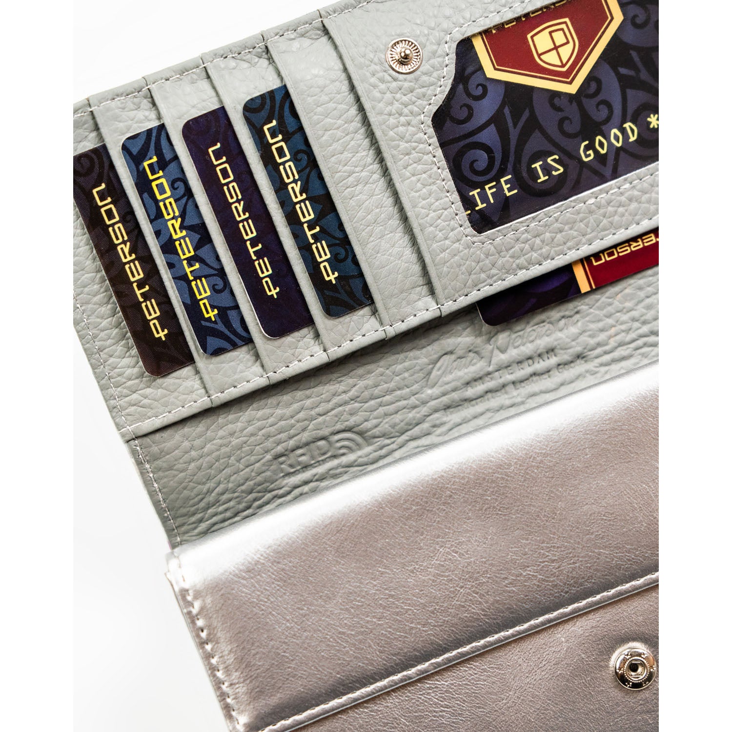 Peterson sieviešu maks, izgatavots no mākslīgās ādas, zilā krāsā, ar RFID aizsardzību.