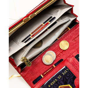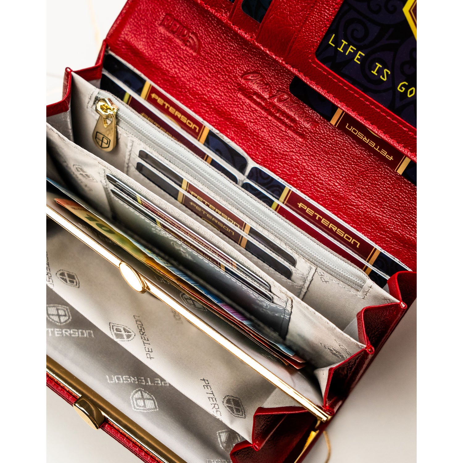 Peterson sarkans sieviešu maks, kas izgatavots no mākslīgās ādas ar RFID aizsardzību.