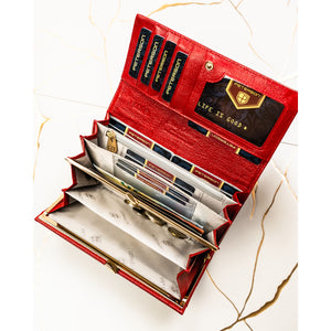 Peterson sarkans sieviešu maks, kas izgatavots no mākslīgās ādas ar RFID aizsardzību.