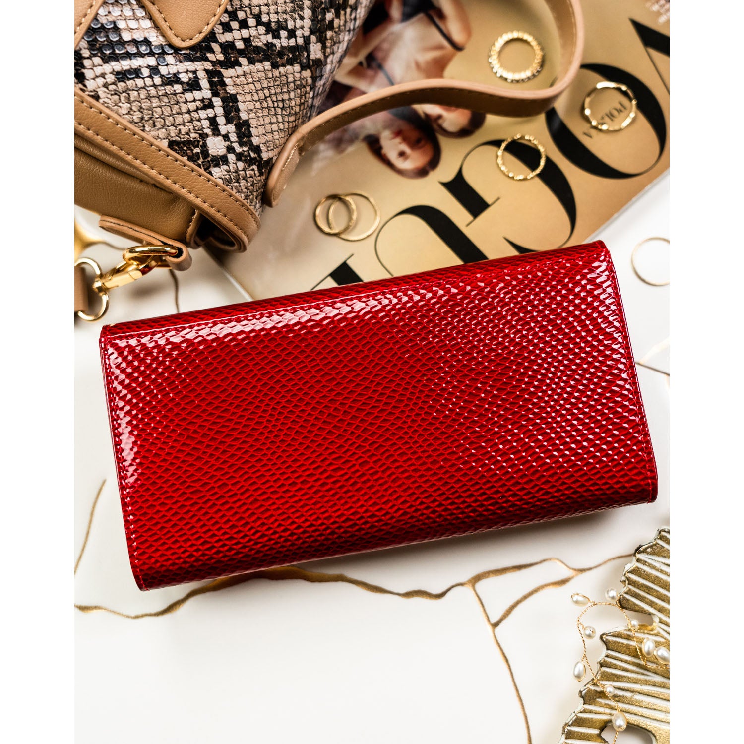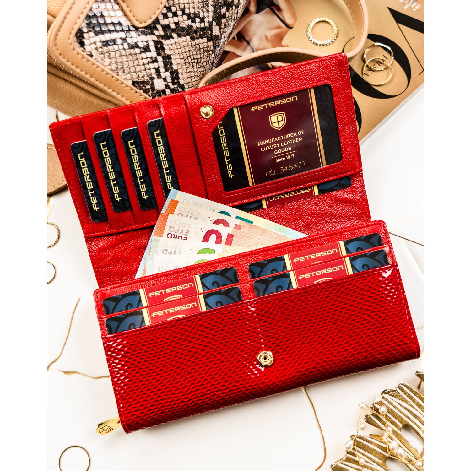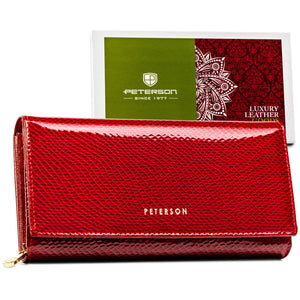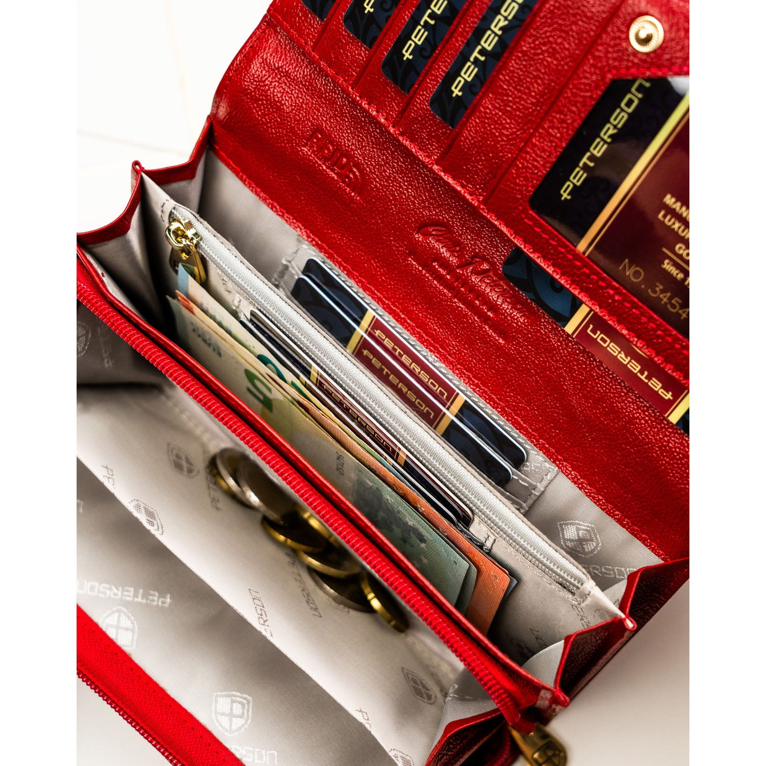 Peterson sarkans sieviešu maks, kas izgatavots no īstas ādas ar RFID aizsardzību.