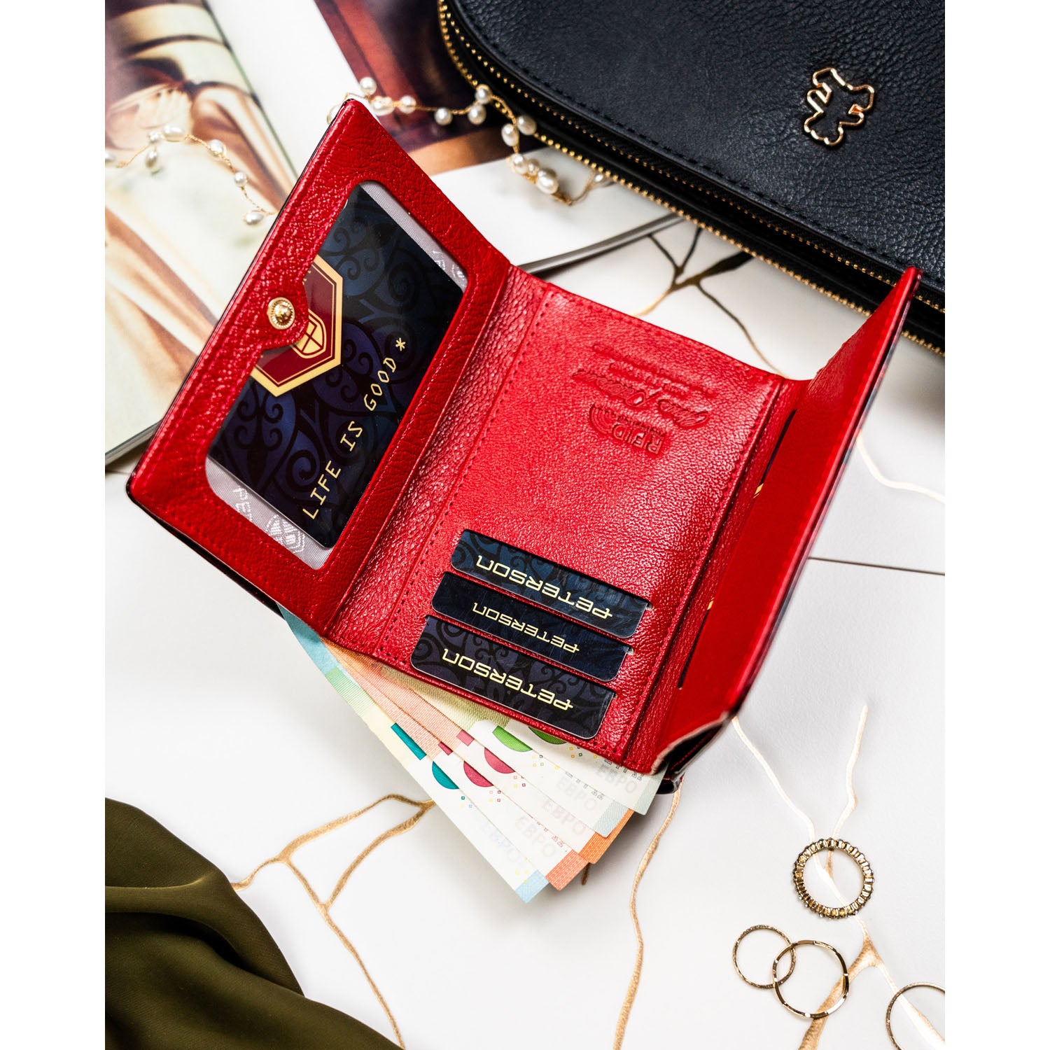 Vidēja izmēra sieviešu maks Peterson, sarkans PT70
