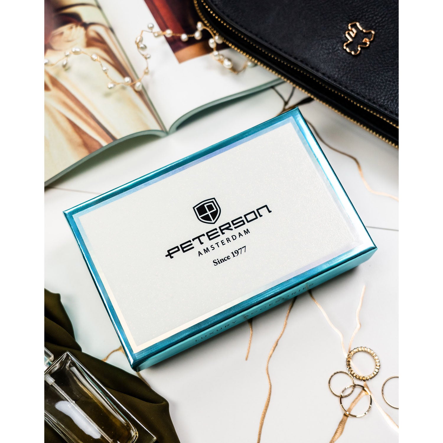 Peterson sarkans sieviešu maks, kas izgatavots no mākslīgās ādas ar RFID aizsardzību.