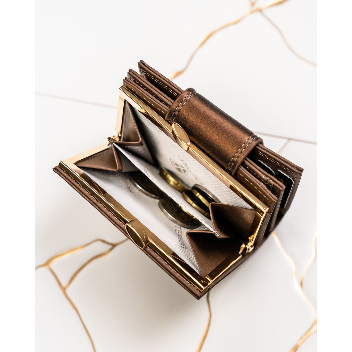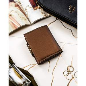 Peterson sieviešu maks, izgatavots no mākslīgās ādas, brūnā krāsā, ar RFID aizsardzību.