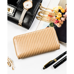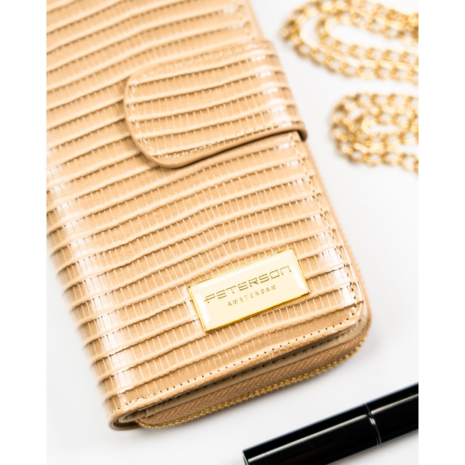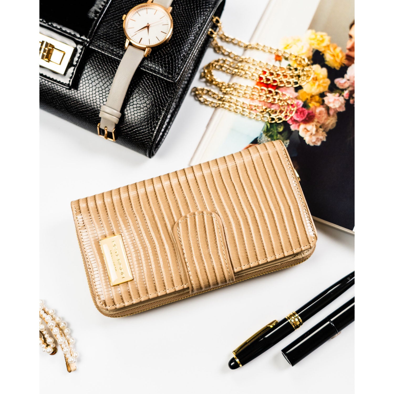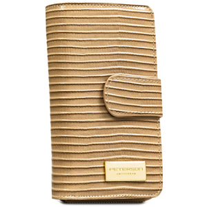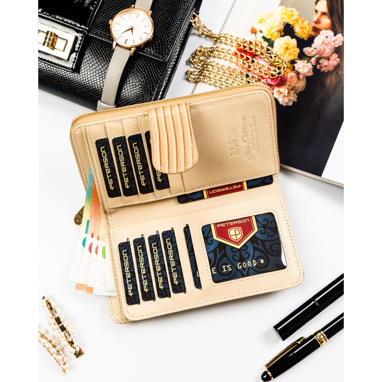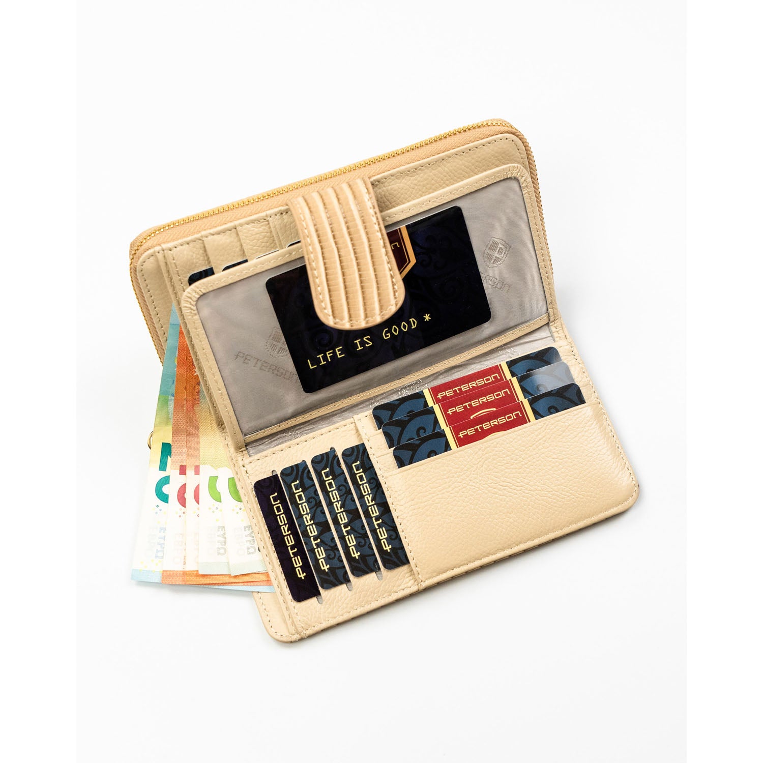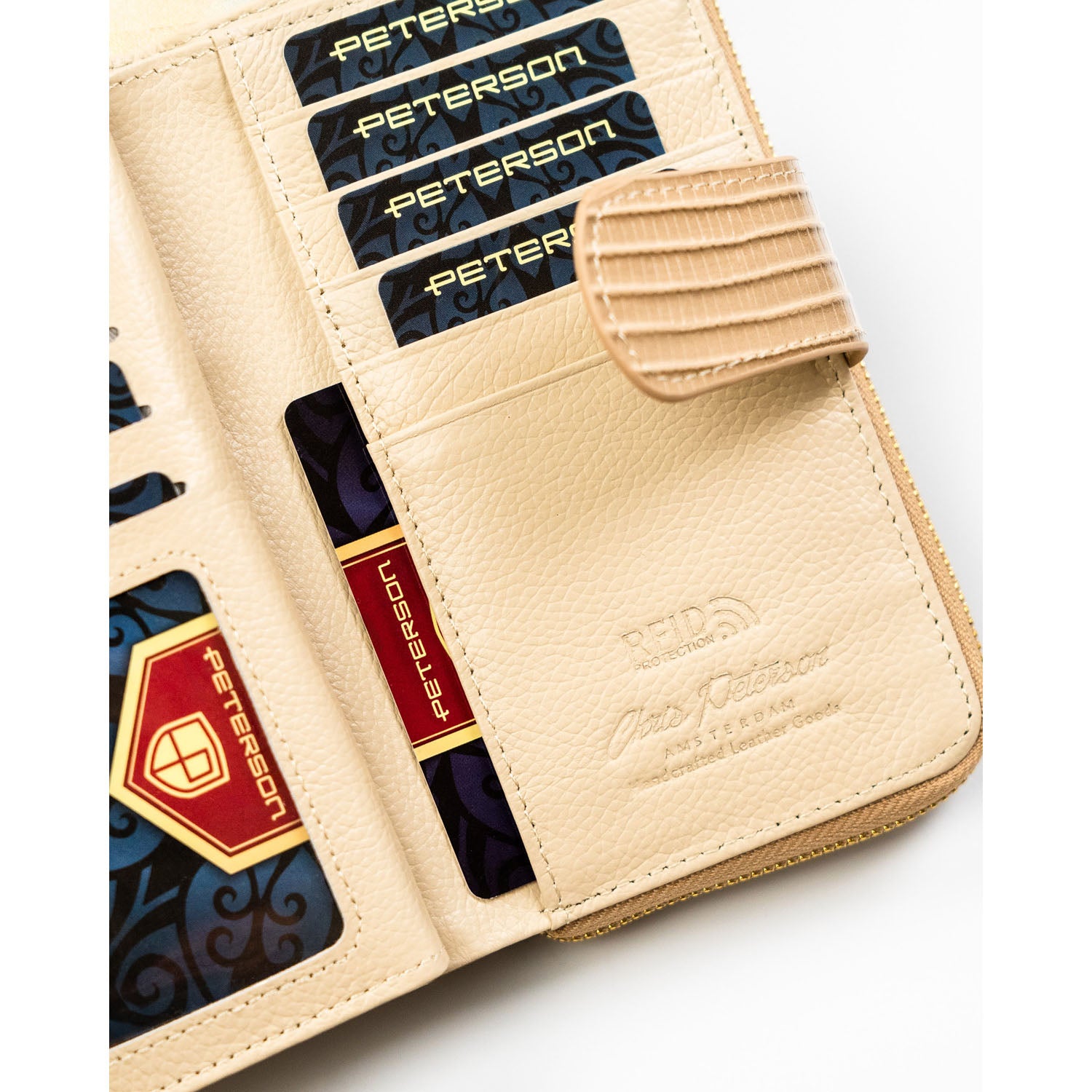 Peterson sieviešu maks, izgatavots no mākslīgās ādas, bēšā krāsā, ar RFID aizsardzību.