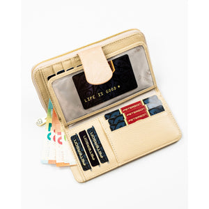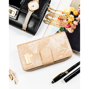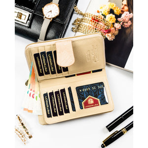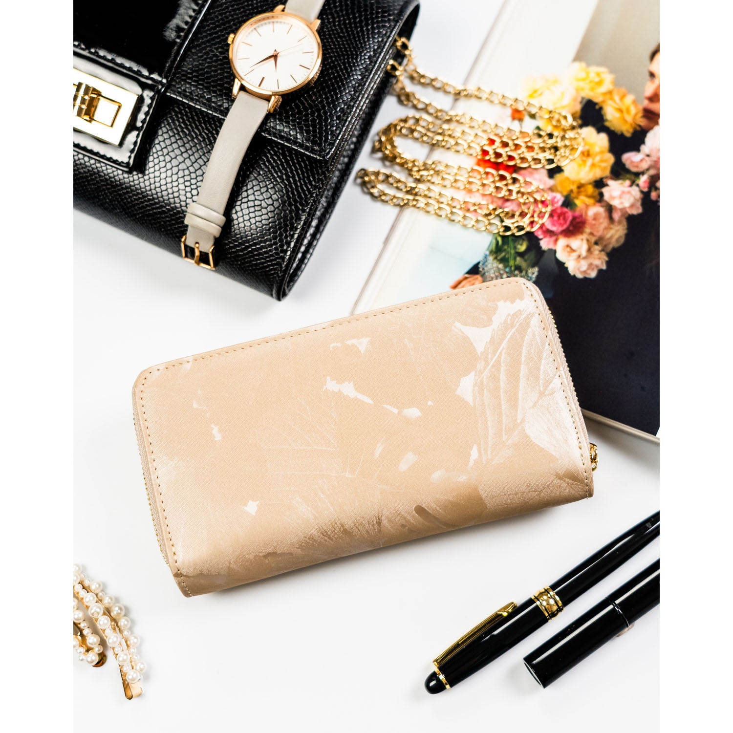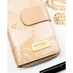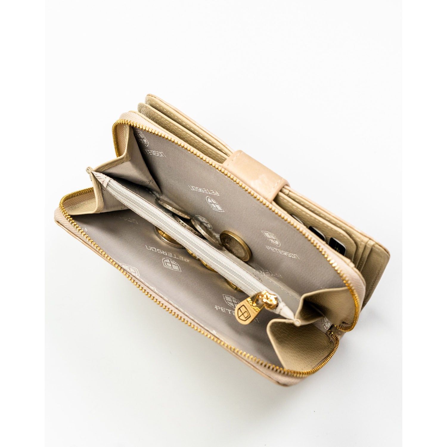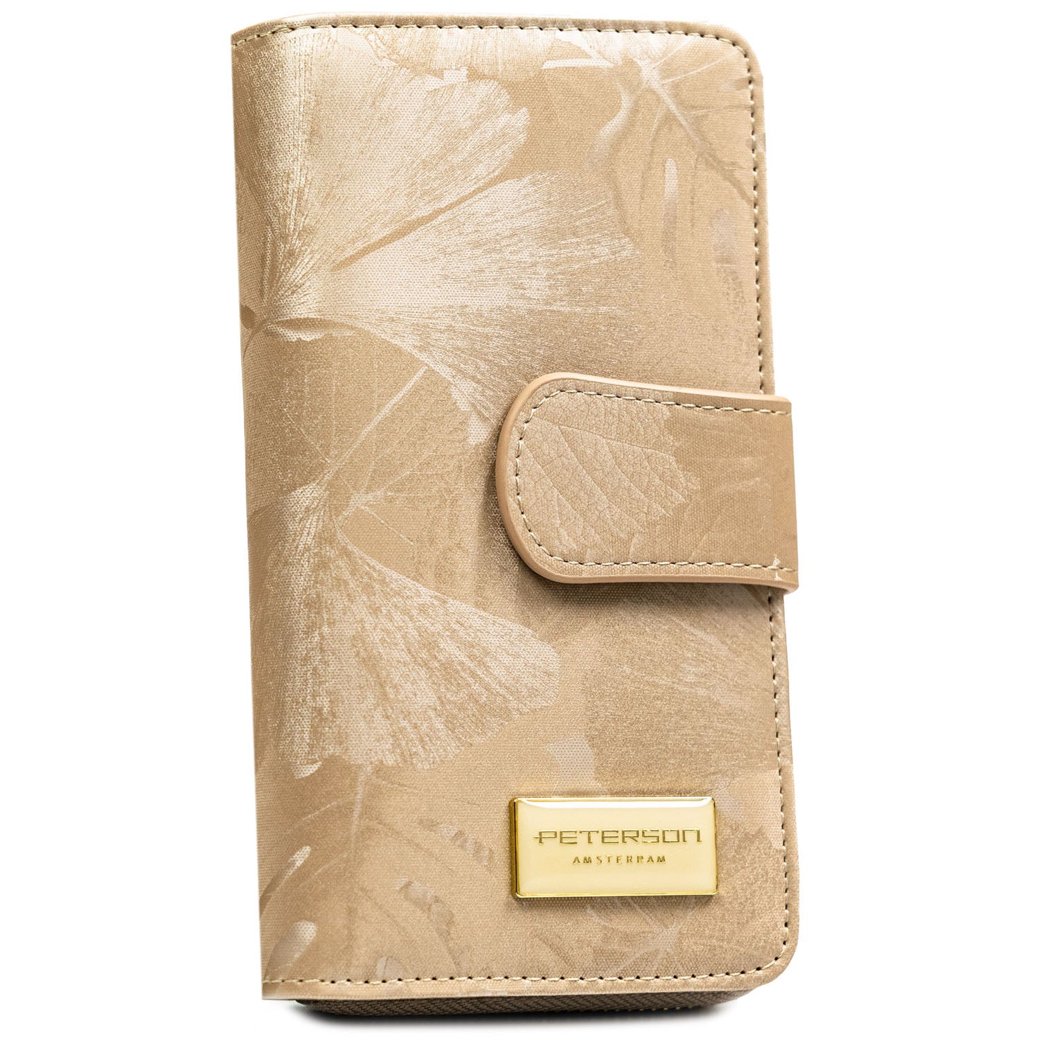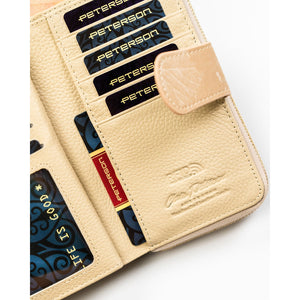 Peterson sieviešu maks, izgatavots no mākslīgās ādas, bēšā krāsā, ar RFID aizsardzību.