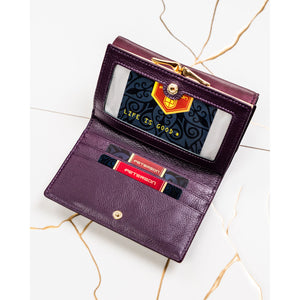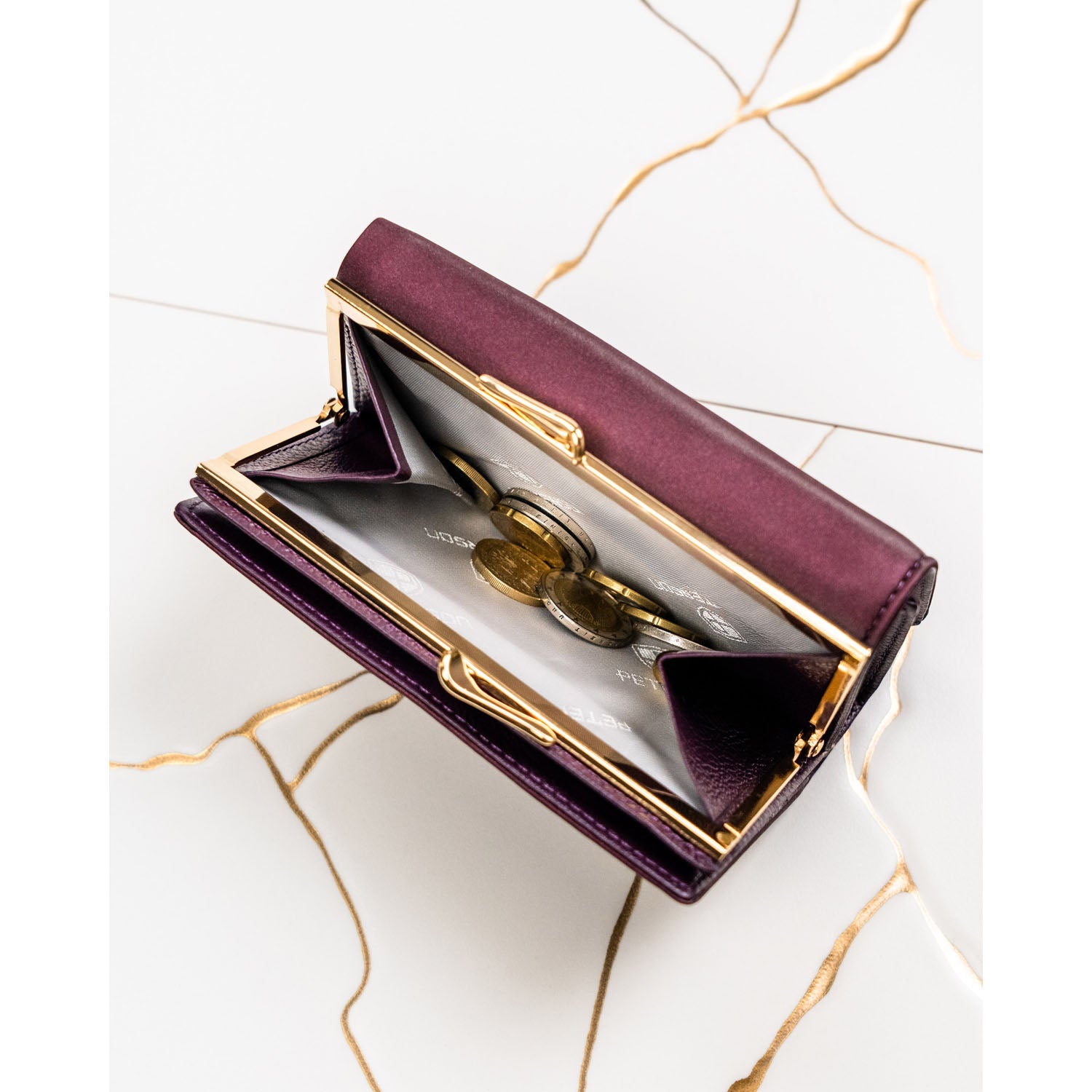 Peterson sieviešu maks, izgatavots no mākslīgās ādas, violetā krāsā, ar RFID aizsardzību.