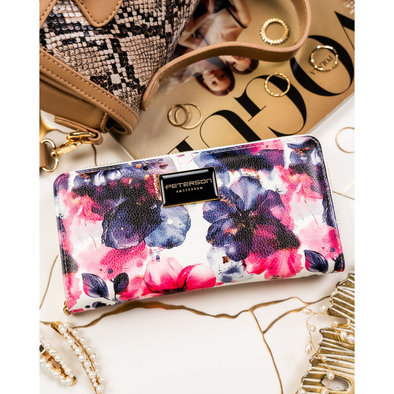 Vidēja izmēra sieviešu maks Peterson, ziedu raksts PT76