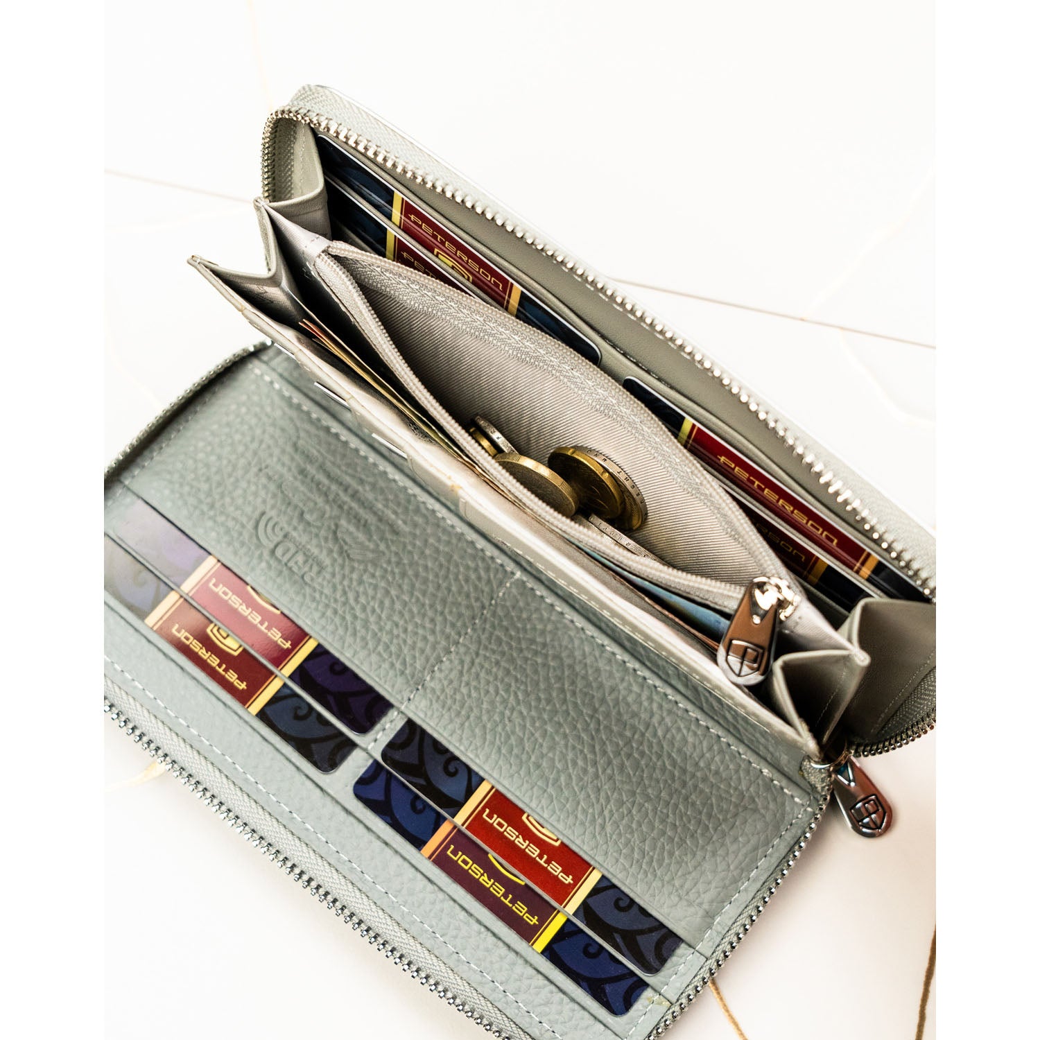 - Kabata monētām ar rāvējslēdzēju.