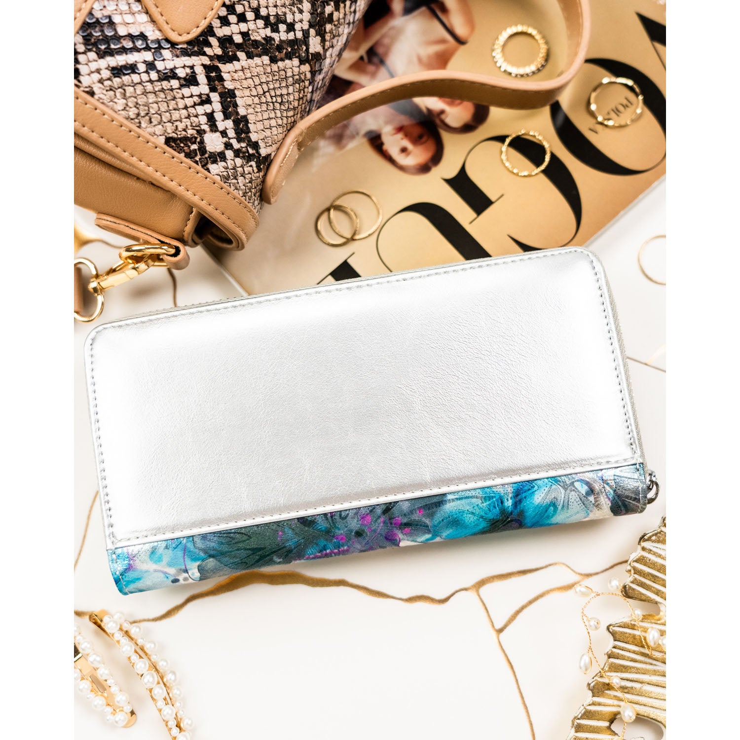 Vidēja izmēra sieviešu maks Peterson, ziedu raksts PT98