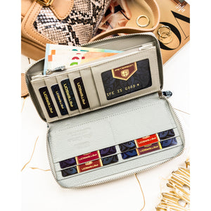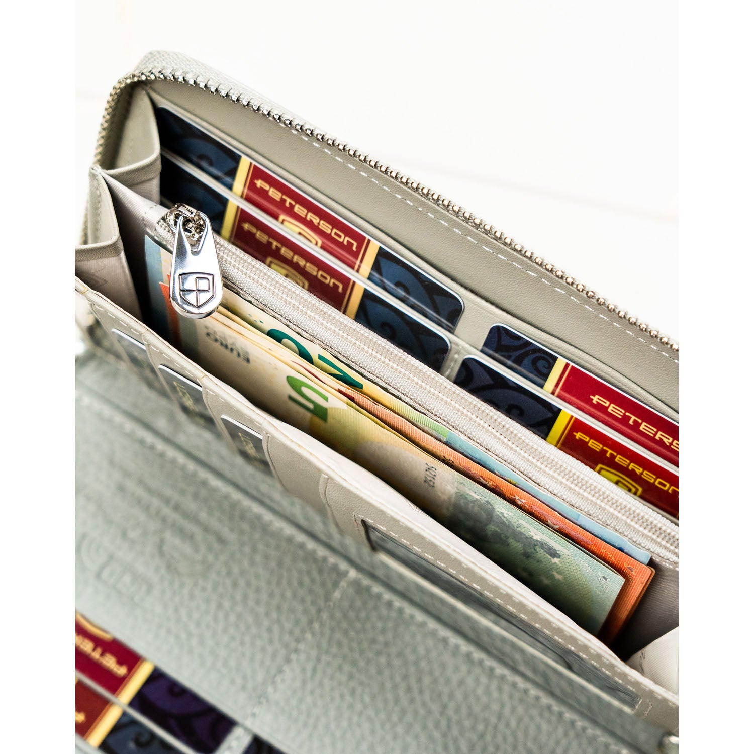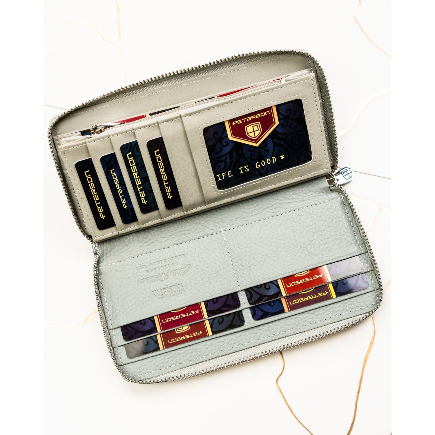 Peterson sieviešu maks, izgatavots no mākslīgās ādas, zilā krāsā, ar RFID aizsardzību.