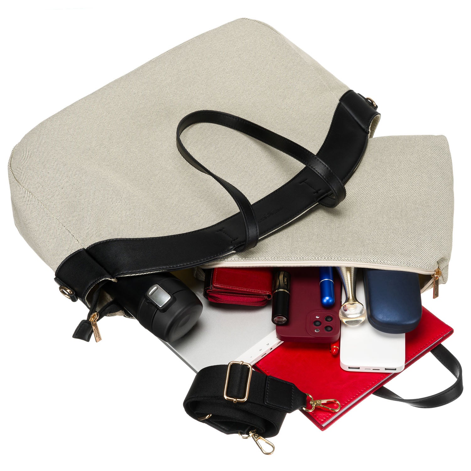 Peterson liela sieviešu rokassoma, kas izgatavota no augstas kvalitātes mākslīgās ādas, ir lieliski piemērota ikdienas lietošanai. Šī elegantā bēšā un melnā rokassoma ir ne tikai stilīga, bet arī praktiska.