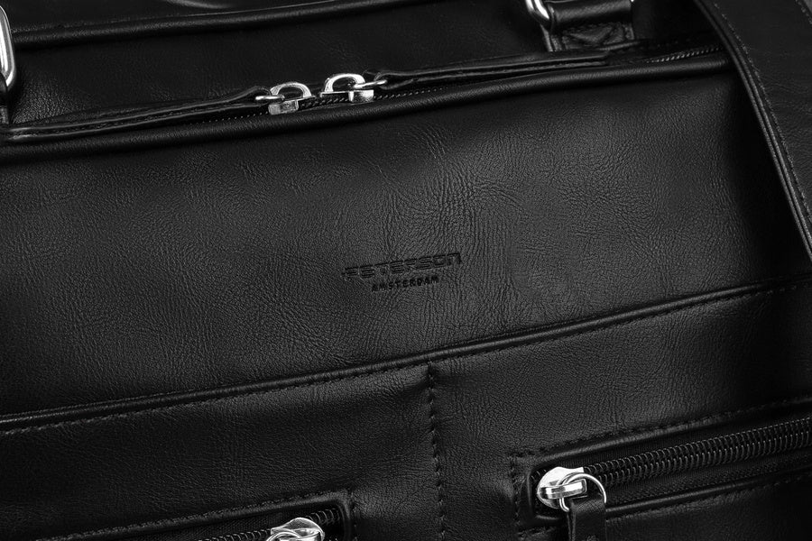 Melnā vīriešu Peterson rokassoma, kas izgatavota no augstas kvalitātes mākslīgās ādas, ir lieliska izvēle gan ikdienai, gan īpašiem gadījumiem. Šo rokassomu var nēsāt gan rokā, gan pār plecu, nodrošinot elastību un komfortu.