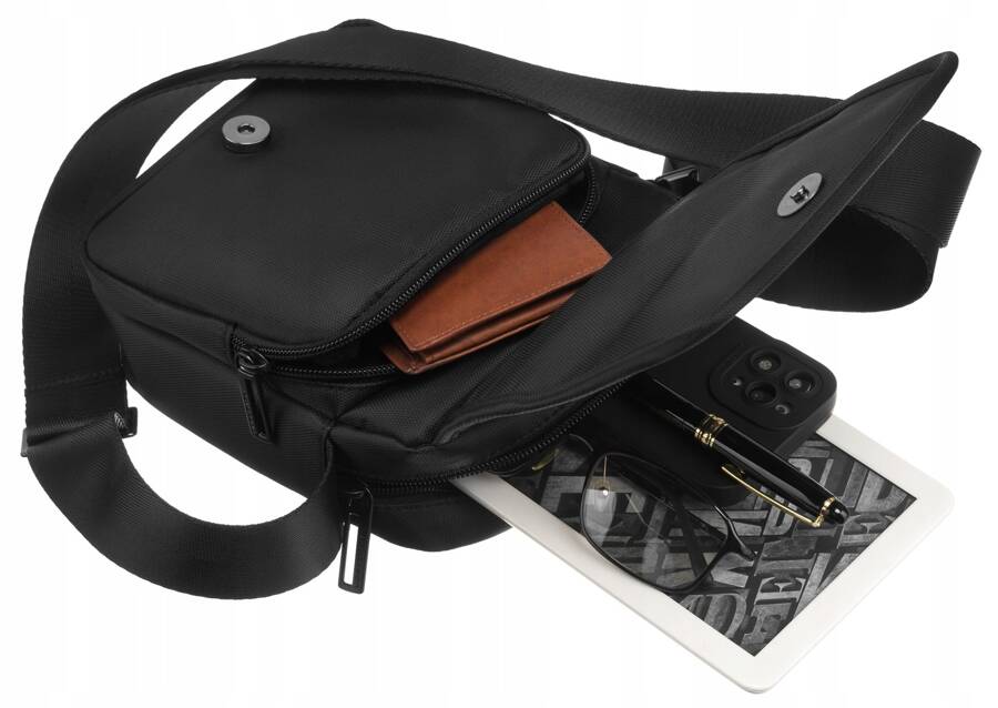 - Siksna: Regulējama siksna ar maksimālo garumu 150 cm nodrošina ērtu nēsāšanu uz pleca.