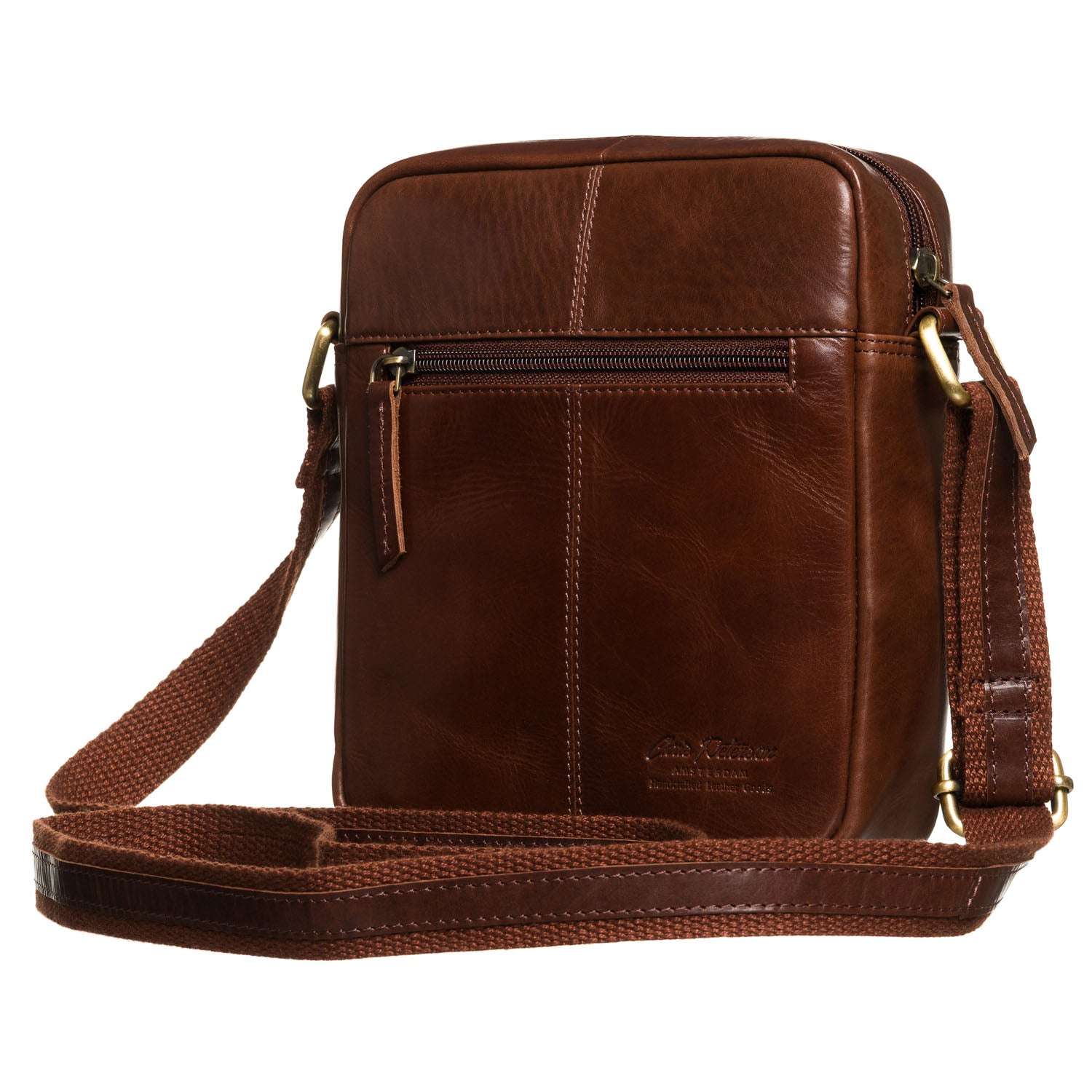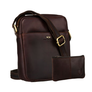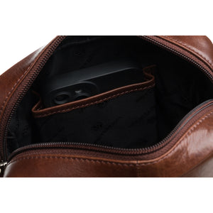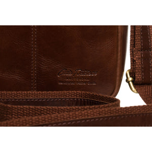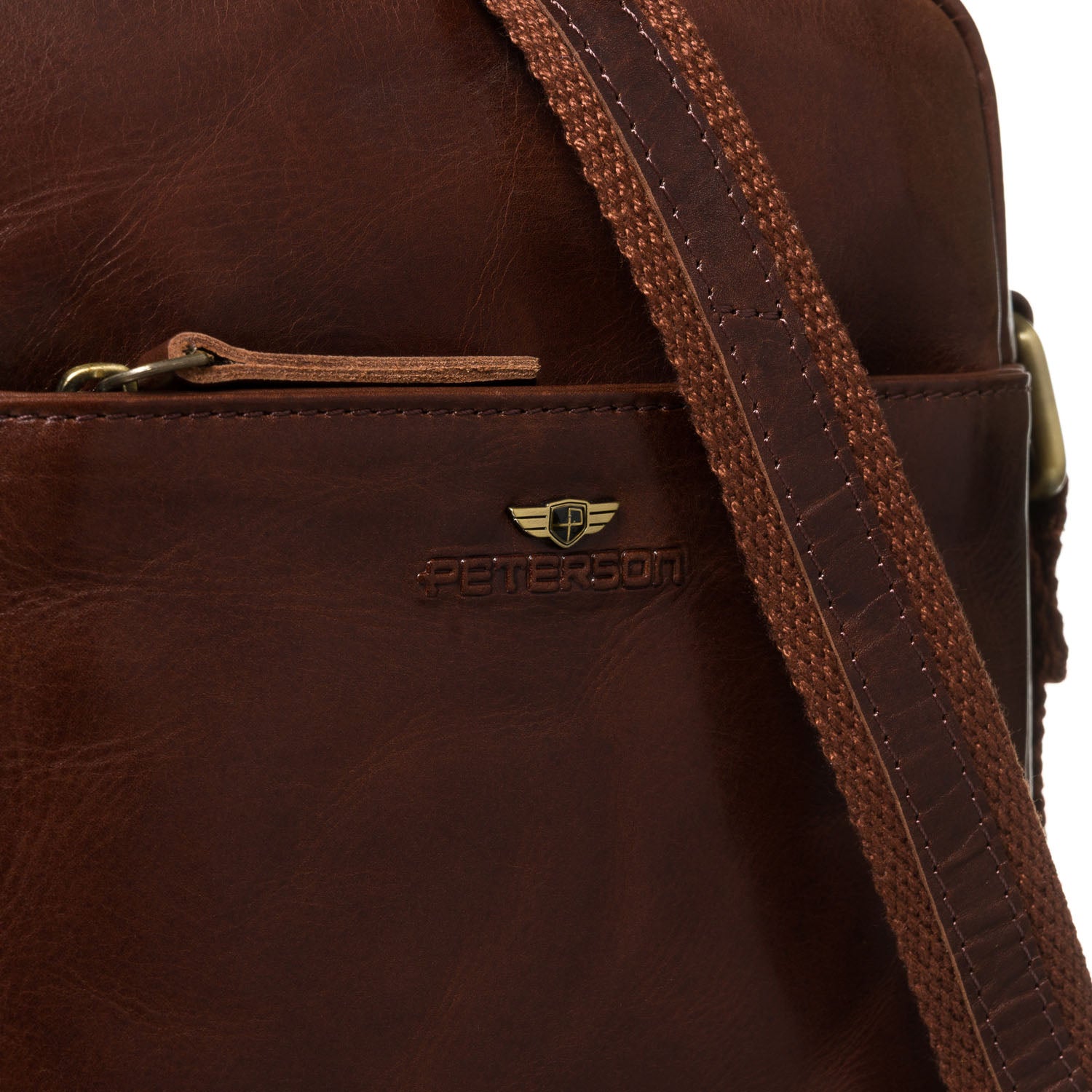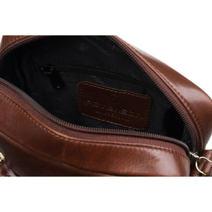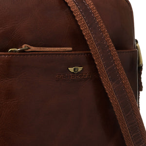 Peterson vīriešu rokassoma, izgatavota no īstas ādas, brūnā krāsā, ideāli piemērota ikdienas lietošanai.