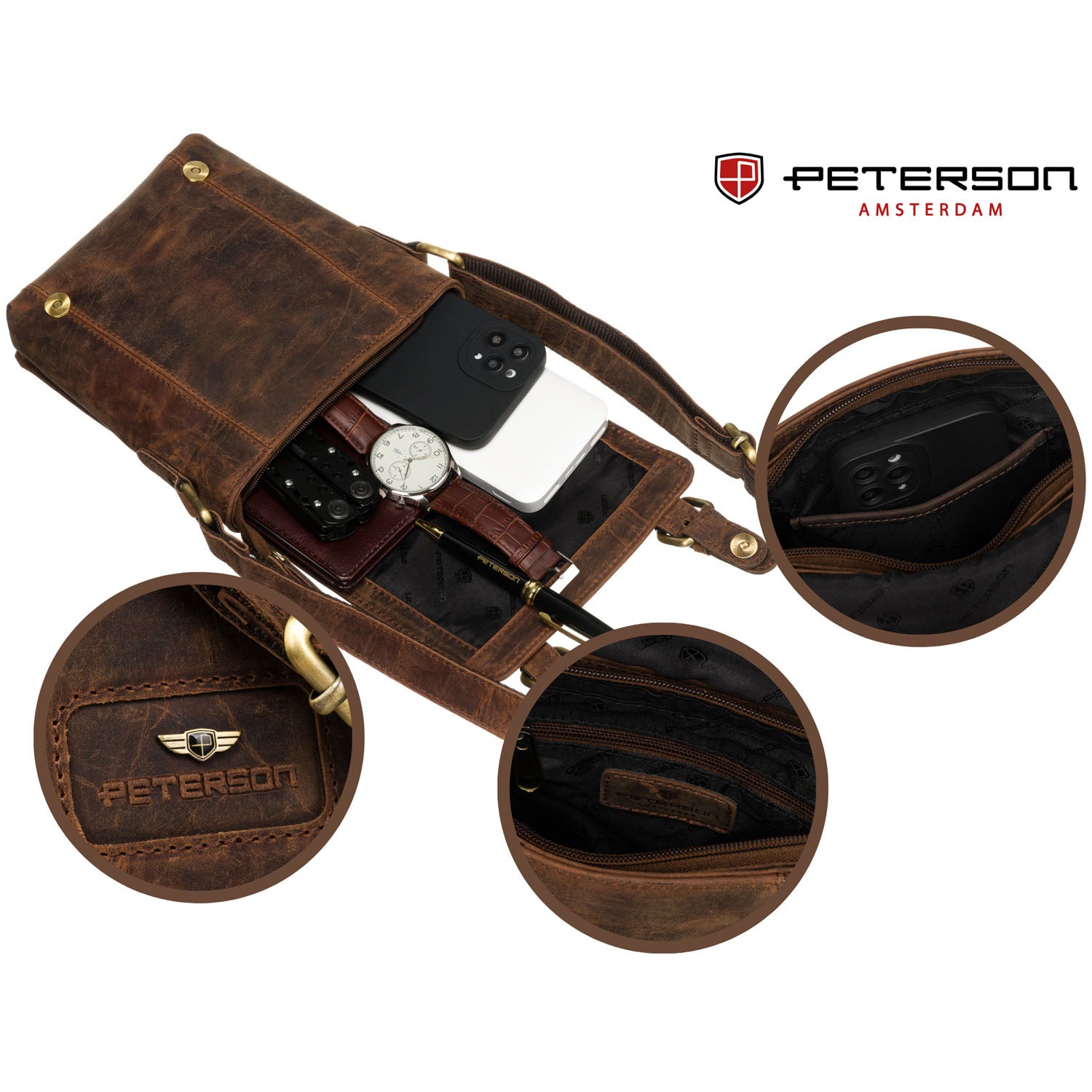 Vīriešu rokassoma Peterson, kas izgatavota no augstas kvalitātes īstas ādas, ir lieliska izvēle ikdienas lietošanai. Šo brūno rokassomu ir viegli kombinēt ar dažādiem stila risinājumiem.