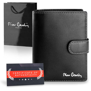 Vīriešu ādas maks Pierre Cardin (melns) – RFID, dāvanu maisiņš, sertifikāts