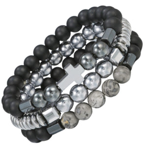 3 modernu aproču komplekts ar krustiņu un matētām pērlītēm, kas lieliski piemērota dāvanai.