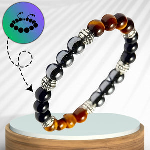 Atklājiet dabisko akmeņu spēku ar šo jauno aizsargājošo rokassprādzi, kas radīta labklājībai, panākumiem un aizsardzībai no negatīvas enerģijas. Izgatavota no trim spēcīgiem akmeņiem - hematīta, tīģera acs un melnā obsidiāna, šī rokassprādze ir elegants aksesuārs un praktisks talismans, kas uztur līdzsvaru un mieru.