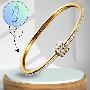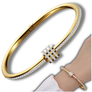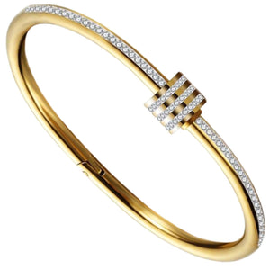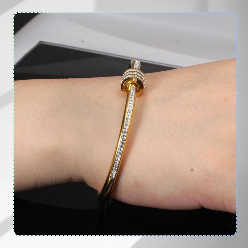 Eleganta rokassprādze, kas izgatavota no ķirurģiskā tērauda 316L. Antialerģiska rotaslieta, kas lieliski piemērota gan elegantam, gan ikdienas tērpam. Aproce ir stingra un dekorēta ar cirkoniem.