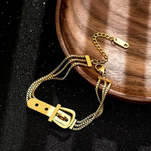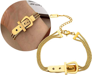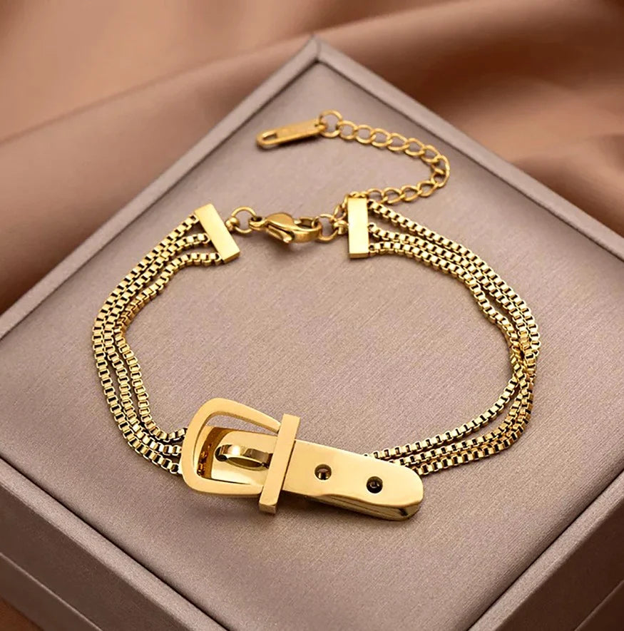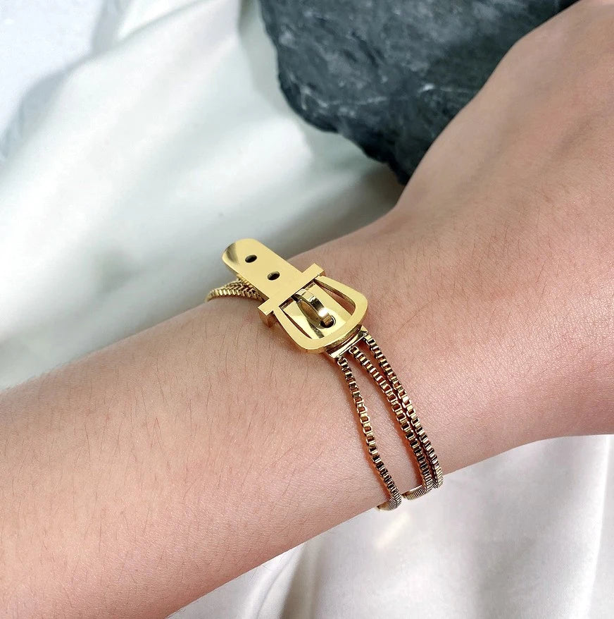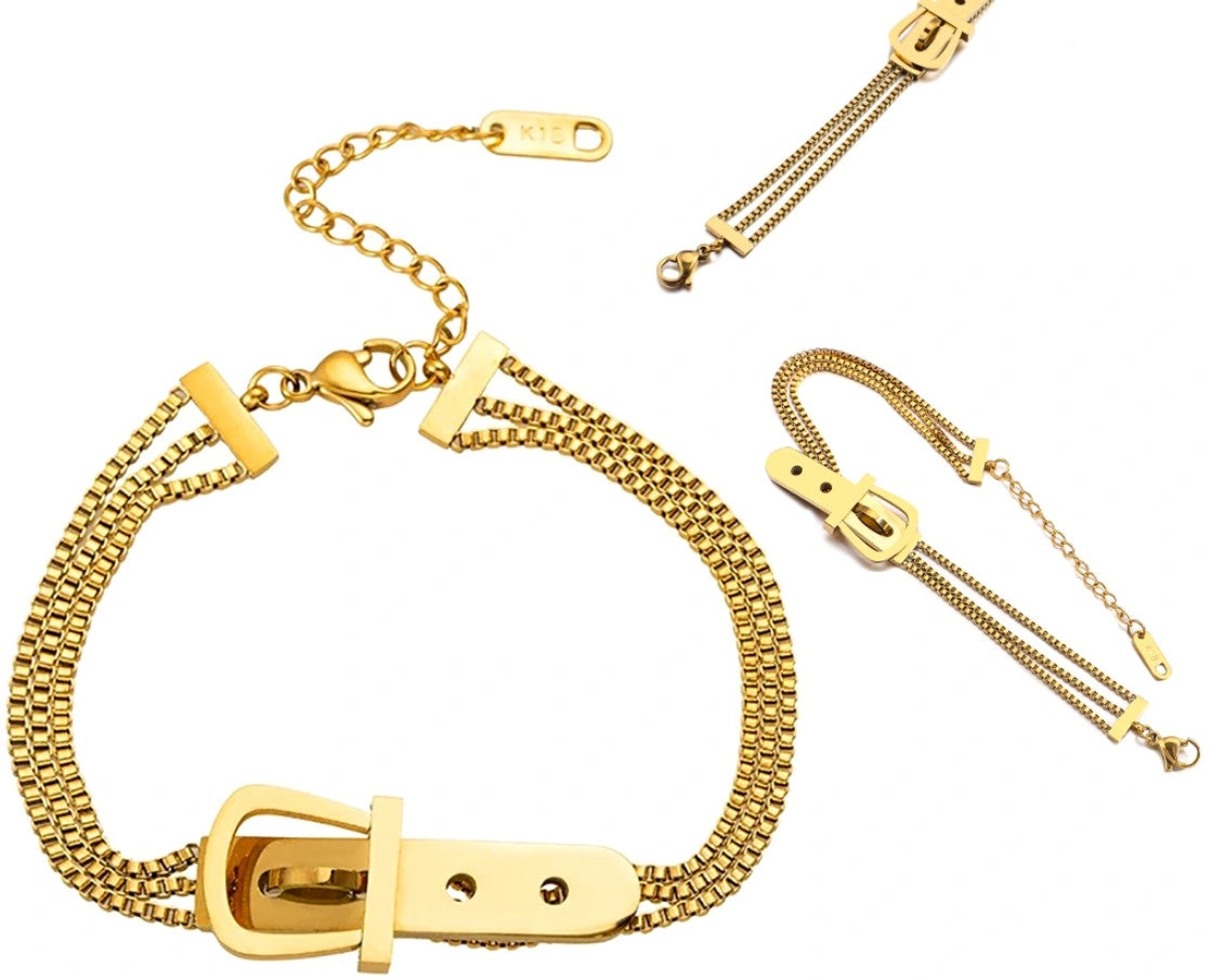 Ķirurģiskais tērauds ir izturīgs pret laikapstākļiem, nerūsējošs un krāsojošs. Aprocei ir unikāls dizains ar trim ķēdītēm katrā pusē, kas savienotas ar spilgtu sprādzi. Tā ir smalka rotaslieta, ko var kombinēt ar dažādiem apģērbiem. Hipoalerģiskais materiāls ir drošs jutīgai ādai un izturīgs pret bojājumiem. Karabīne nodrošina drošu aizdari, samazinot aproces pazaudēšanas risku. Lieliska dāvana mīļotajam cilvēkam dažādos gadījumos.