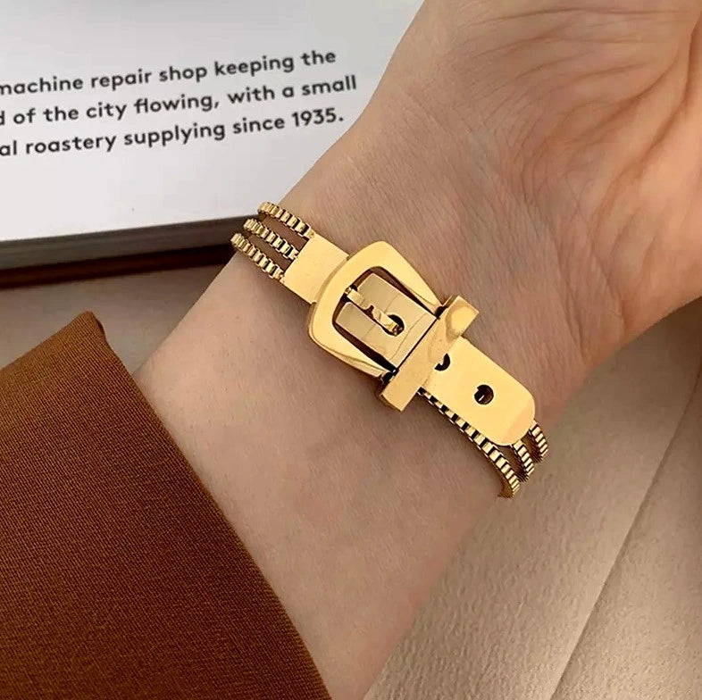 Eleganta zelta krāsas rokassprādze, ķirurģiskais tērauds