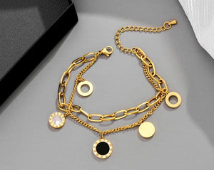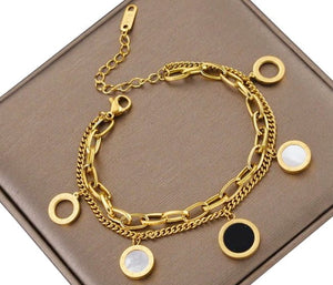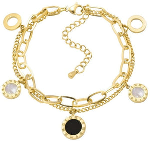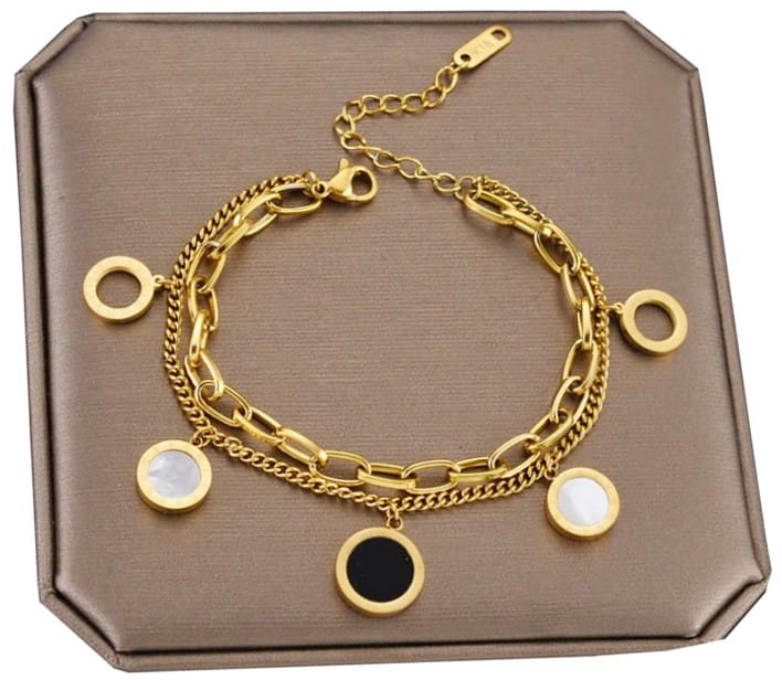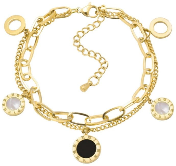 Eleganta rokassprādze no ķirurģiskā tērauda, pārklāta ar 18 karātu zeltu. Antialerģiska rotaslieta, kas lieliski piemērota gan elegantam, gan ikdienas tērpam. Modes aksesuārs jebkuram gadījumam, piemērots džemperiem, kleitām un blūzēm.
