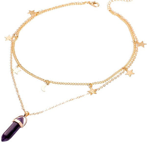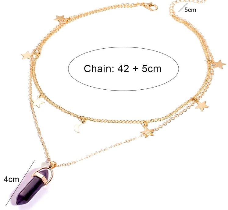 Šī kaklarota ar violetu kulonu ir dekorēta ar smalkiem zvaigžņu un mēness elementiem zeltā un sudrabā. Lielākais dekoratīvais elements ir violeta lode, kas izgatavota no augstas kvalitātes sintētiskā stikla.