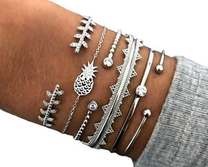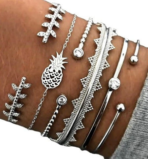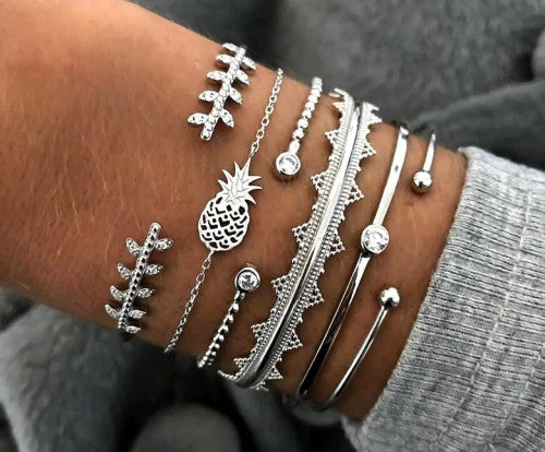 Izgatavots no augstas kvalitātes rotaslietu metāla, šis aproču komplekts nodrošina izturību un eleganci. Komplektā ietilpst sešas unikālas aproces, kas tiek pārdotas tikai kopā.
