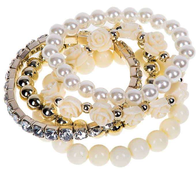 Šis rokassprādzes komplekts apvieno ziedu, pērļu un fliteru šarmu, radot elegantu un sievišķīgu aksesuāru. Tā ir lieliska izvēle sievietēm, kuras novērtē smalkas un stilīgas rotaslietas.