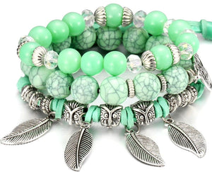 Šis rokassprādžu komplekts sastāv no trim daļām, kas ir uzstiprinātas uz elastīgas gumijas lentes, tāpēc tās ir piemērotas dažādiem plaukstas locītavu izmēriem.