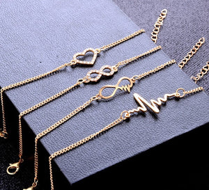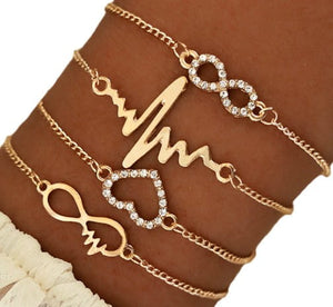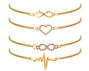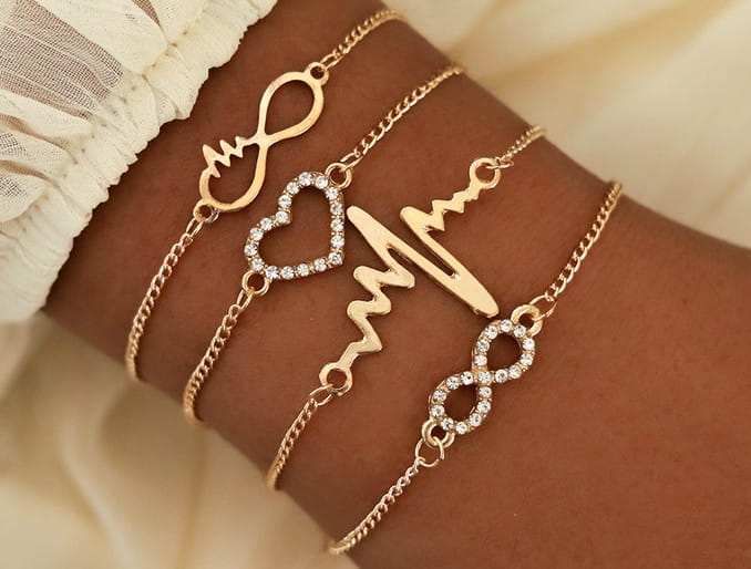 Šis elegantais komplekts sastāv no četrām zelta aprocēm, kas lieliski papildina viena otru un rada greznības sajūtu.
