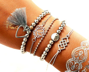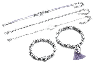 Iepazīstinām ar ekskluzīvu 5 aproču komplektu, kas būs lielisks papildinājums jūsu rotaslietu kolekcijai. Šis komplekts izceļas ar savu unikālo dizainu un augsto kvalitāti.