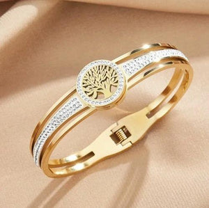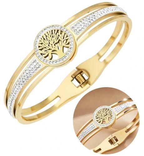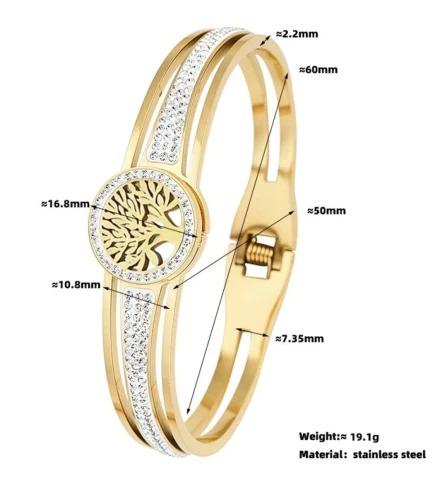 Šī elegantā rokassprādze ir izgatavota no apzeltīta ķirurģiskā tērauda, kas ir pazīstams ar savu izturību un ilgmūžību. Tā ir lieliska izvēle gan ikdienas, gan elegantam stilam.